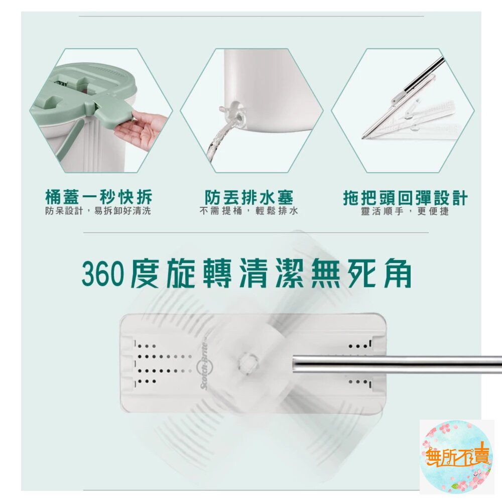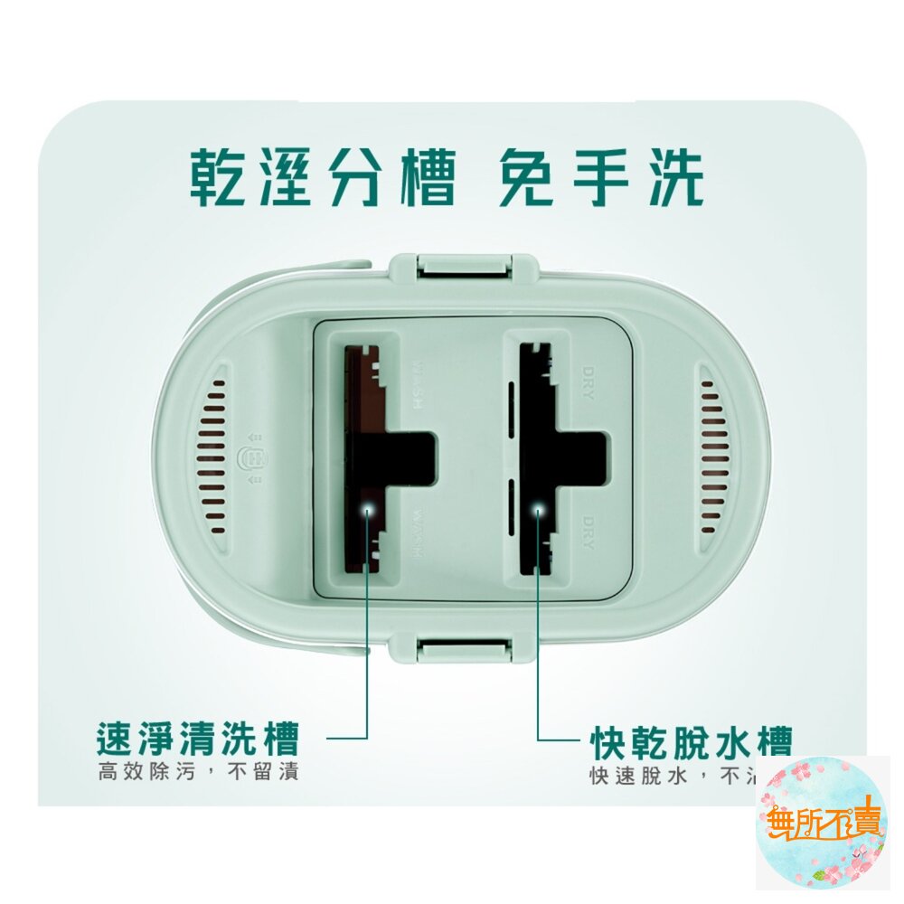 【清潔不沾手】乾溼分槽,清洗拖把布不須手碰髒水 。
