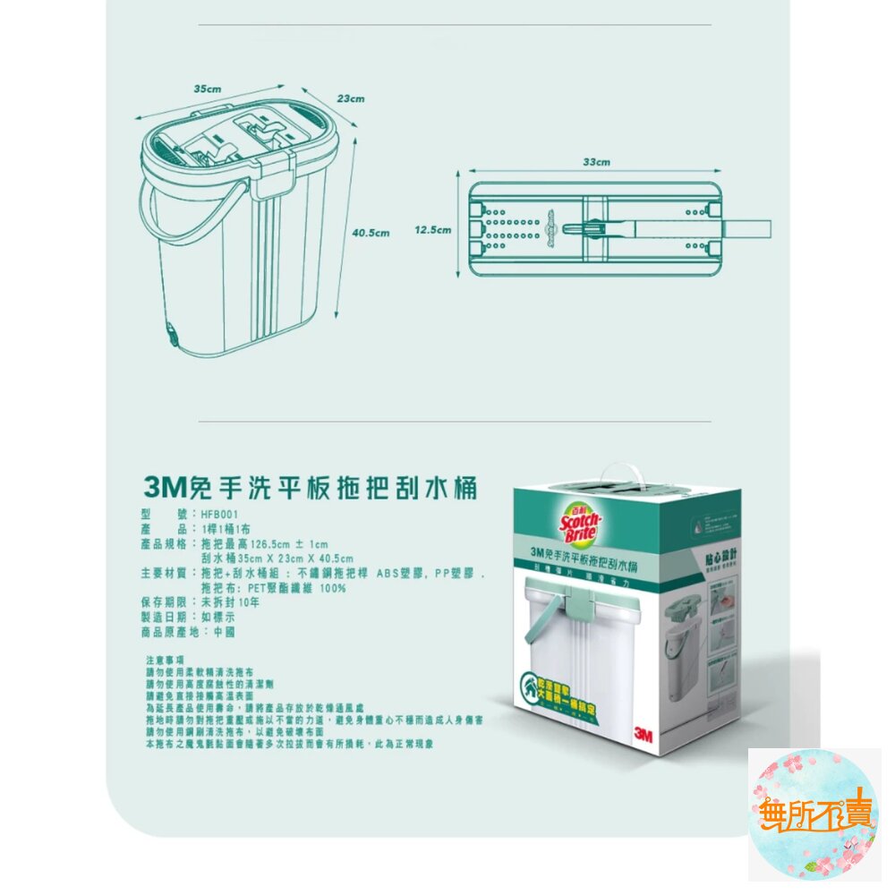 產品規格:拖把最高 126.5cm ± 1cm , 刮水桶 35cm X 23cm X 40.5cm ( 長,寬,高/ ± 1cm )