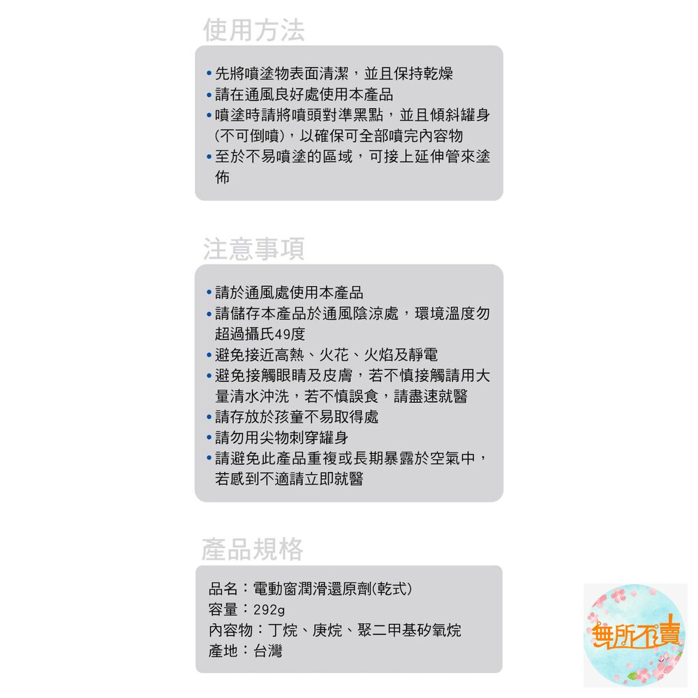 3M™ 電動窗潤滑劑可改善電動窗昇降不順的現象 減少電動窗密合不良所產生的噪音 迅速恢復膠條彈性