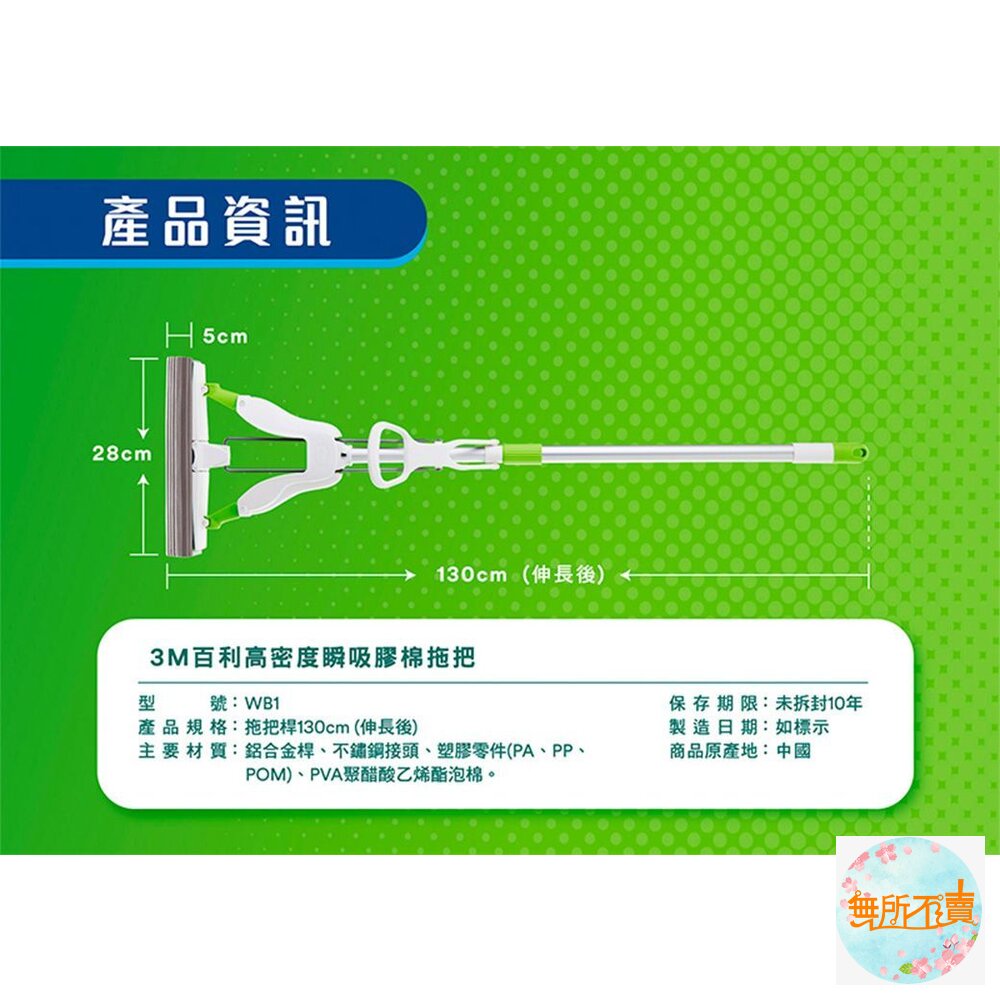3M百利高密度瞬吸膠棉拖把/WB1/白/1桿1膠棉 服貼地面:可45度角平貼地面,一拖即淨不殘污 速軟省時:遇水即可迅速軟化 7倍吸水:吸水量大又快 規 格:WB1/白/1桿1膠棉 單 位:支 買2隻加送拖把膠棉頭1個(袋裝無彩標),送完為止