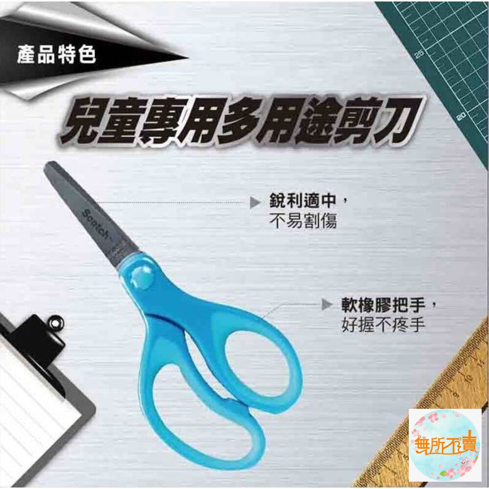 3M Scotch 兒童安全剪刀 SS-K5, 5吋 產品介紹 ◆兒童專用 ◆不易割傷 - 刀鋒採用圓頭設計 ◆不易割傷 - 刀鋒銳利度適中,適合學校美勞課用途 ◆保護手指 - 柔軟橡膠把手,使用不費力 ◆左右手適用 ★本商品為消耗品,一經拆封使用,恕無法辦理退貨★