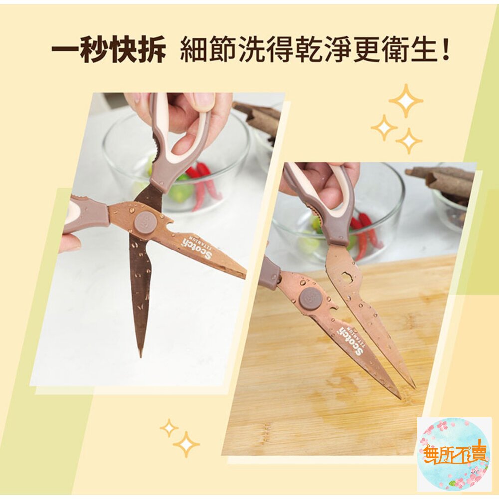 3M Scotch 抗菌可拆式鈦金屬廚房料理剪刀-璀璨金