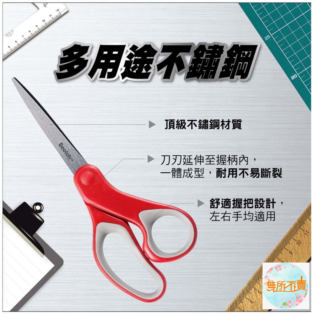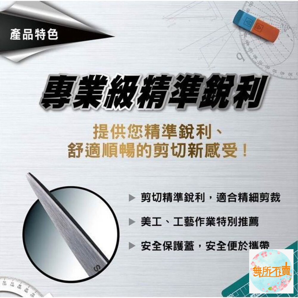 材質:頂級不鏽鋼 產品介紹 ◆頂級不鏽鋼材質 ◆刀刃不易鬆脫,刀刃延伸至握柄,一體成形 ◆符合人體工學,橡膠握柄,使用不費力 ◆可剪卡片、護貝紙、照片、影印紙 ★本商品為消耗品,一經拆封使用,恕無法辦理退貨★