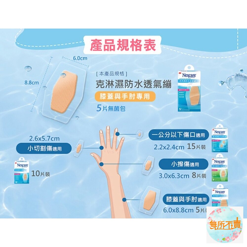 ◆品名:3M Nexcare 克淋濕防水透氣繃 5 片包