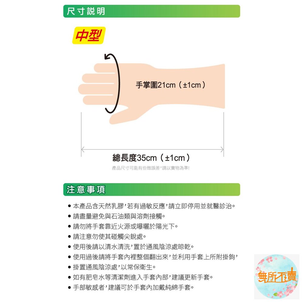 商品尺寸:手掌圍21cm(±1cm)、 總長度35cm(±1cm)