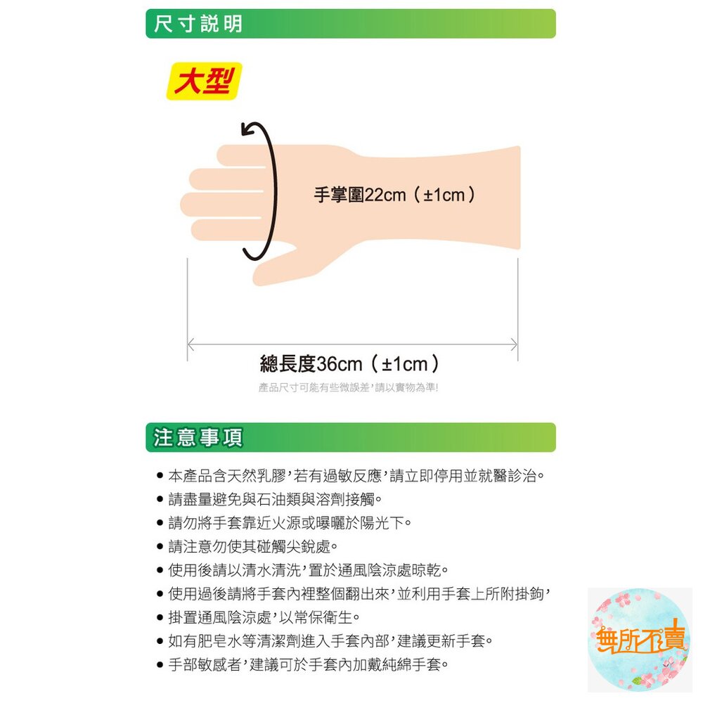 商品尺寸:手掌圍22cm(±1cm)、總長度36cm(±1cm)