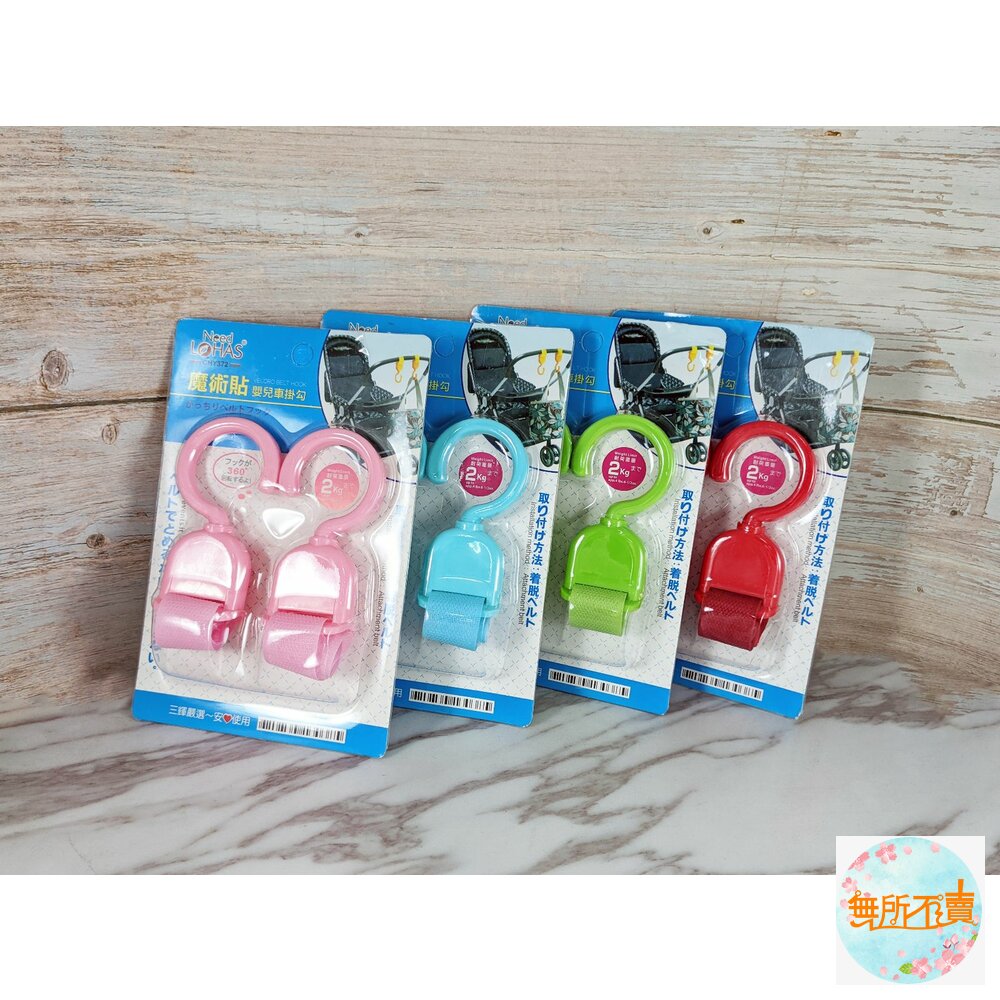 2入裝 材質:ABS、魔鬼氈 規格:約90*50 mm ※最佳耐荷重約2kg ※可適用於直徑2-4cm的把手上 ※魔術帶相重疊黏合須5cm以上並兩面黏牢 ※掛勾處可360度旋轉 產地中國 不可挑色,隨機出貨