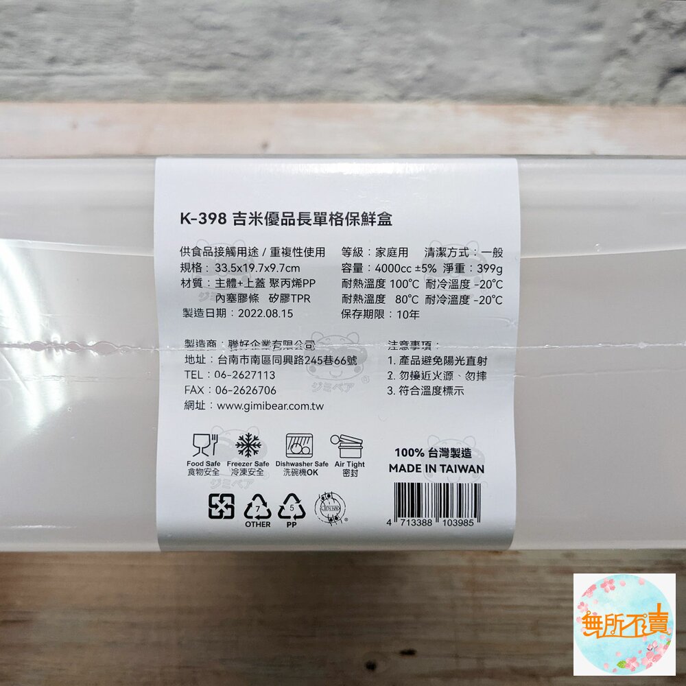 K-398 吉米優品長單格保鮮盒