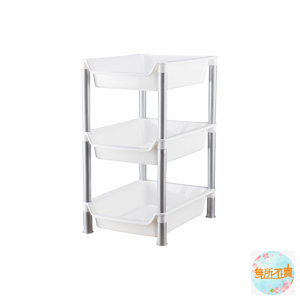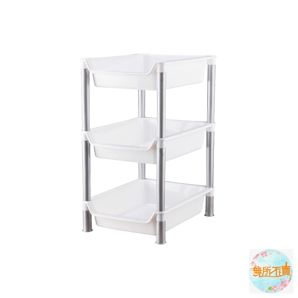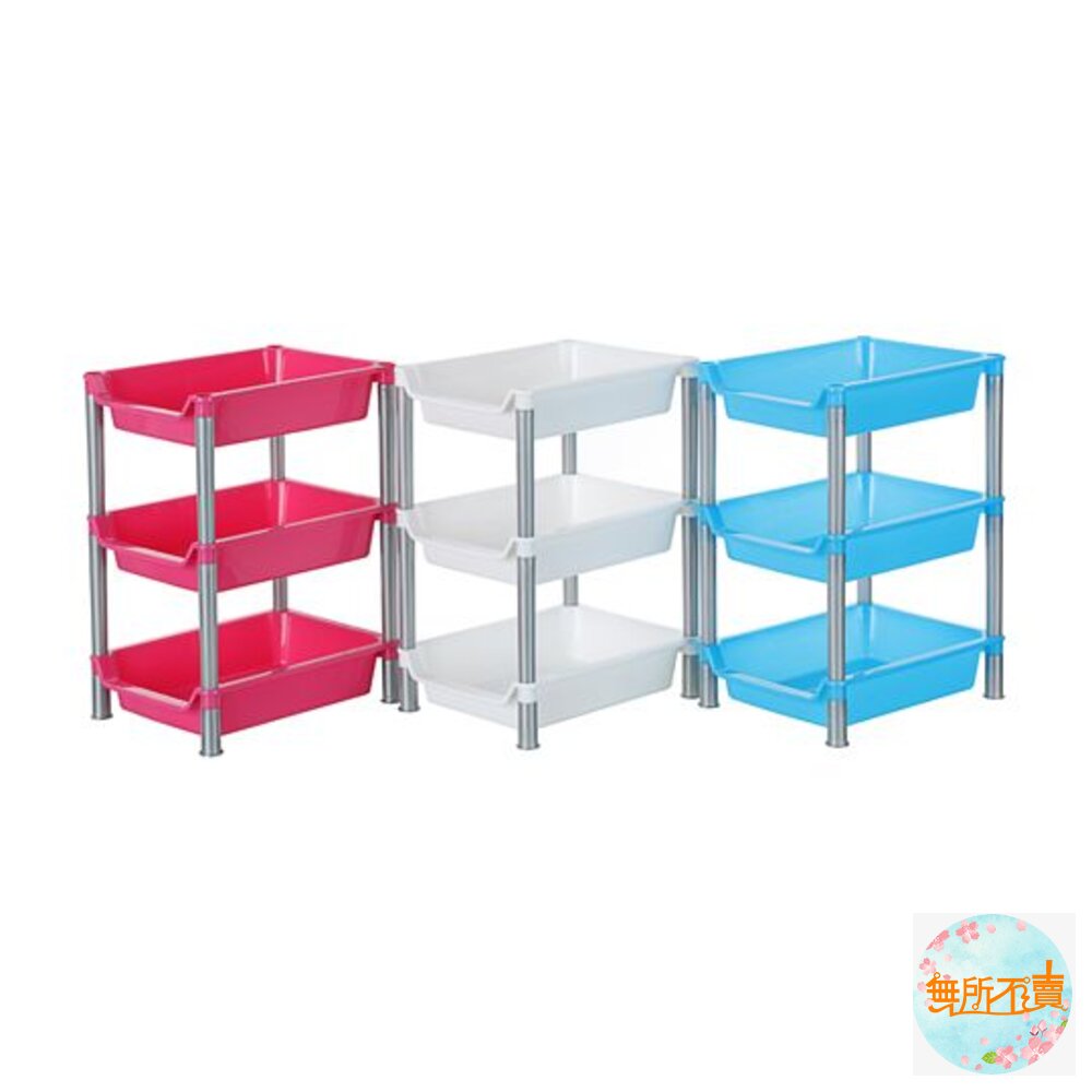 A53 滿滿三層架 產品編號:A53 尺寸:255x192x347mm 產品特色 長型設計,便利層架,組裝容易,底部墊高設計,更穩固防潮,凹口設計,易於取物; 可置於廚房流理台、衛浴等空間,有三層(A53)、四層(A54)的層架,可供選擇,甜美桃紅、奔放水藍、皎潔白,可供挑選。
