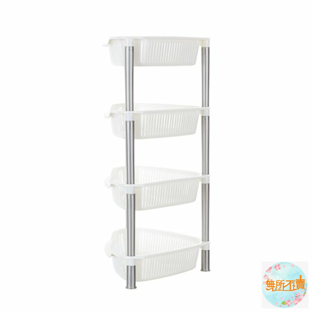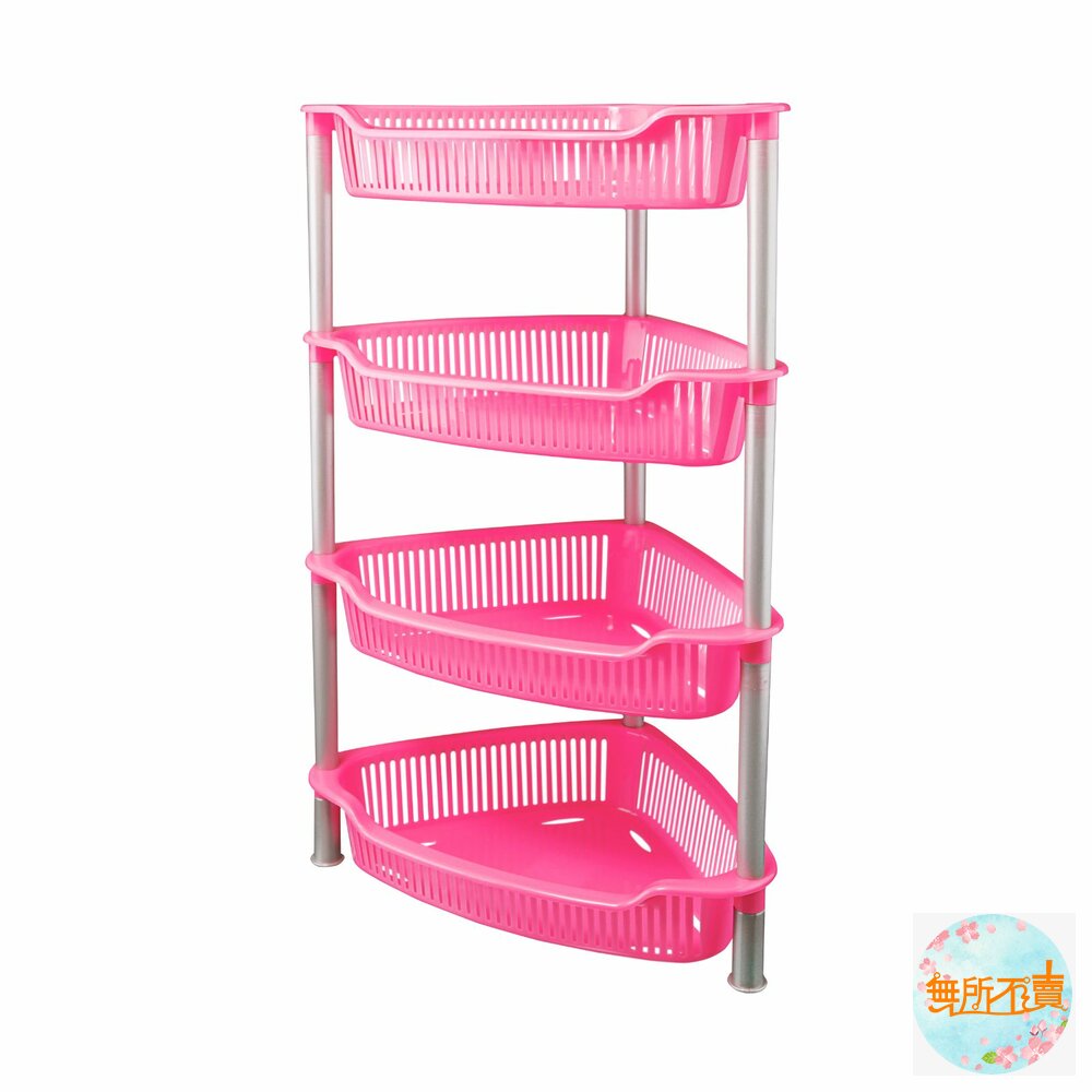 A94上格三角四層架 產品編號:A94 尺寸:315x225x487mm 產品特色三角型設計,可放置於空間角落,透孔設計,通風瀝水,便利層架,組裝容易,底部墊高設計,更穩固防潮,凹口設計,易於取物;可置於廚房流理台、衛浴等空間,有三層(A93)、四層(A94)的層架,可供選擇,甜美桃紅、奔放水藍、皎潔白,可供挑選。