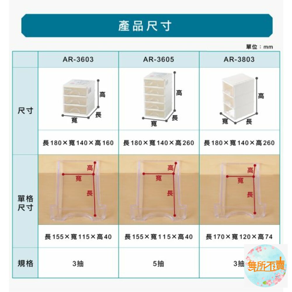超取4個為限~ AR-3803 彩集三層收納盒 產品編號:AR3803 尺寸:180x140x260mm 產品特色 淨白透亮,簡約素雅,透明抽屜,一目了然, 適用於辦公室文具或居家小物、針線、飾品的收納, 有各式層數之產品,可供選擇。