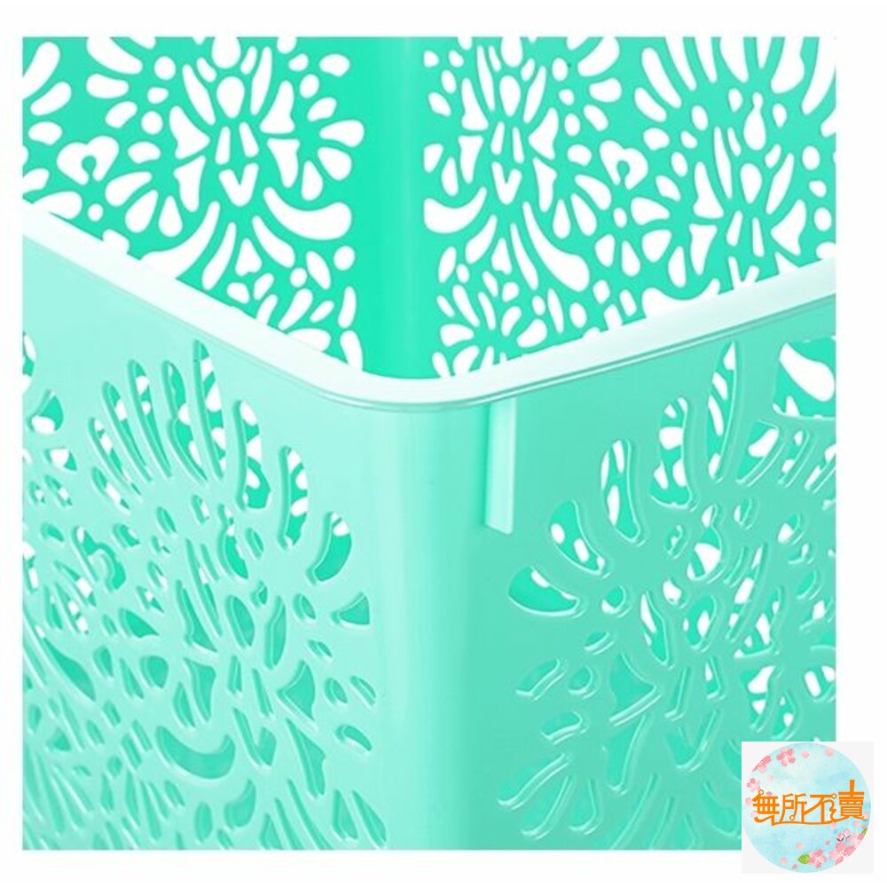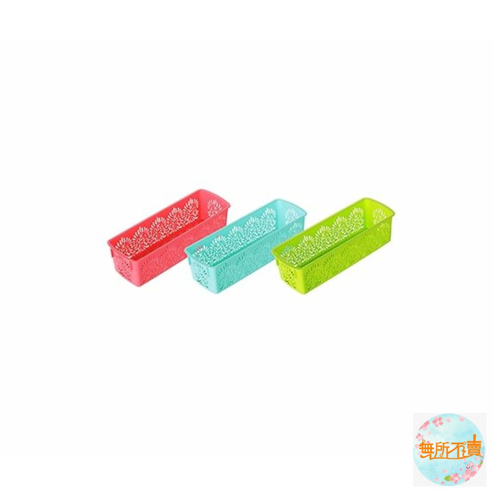 繽紛亮眼色調,側面作鏤空雕花設計,通風透氣,手把設計,便於拿取,適用於各式雜物的放置,為居家收納好幫手,亦可堆疊收納,節省空間;有各式尺寸,可供選擇,方可搭配抽屜、系統櫃使用。