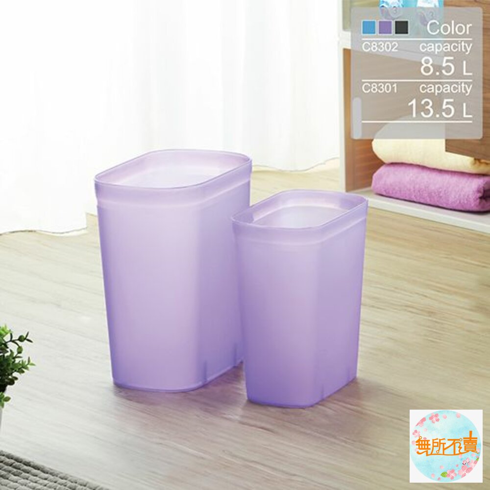 C8301大挪威垃圾桶(長型) 產品編號:C8301 尺寸:293x198x322mm 容量:13.5 Liters 產品特色 簡便丟垃圾,長型設計,霧面表層,更富質感,有兩種尺寸之產品,可供選擇;自由水藍、低調黑、優雅紫,任君挑選。