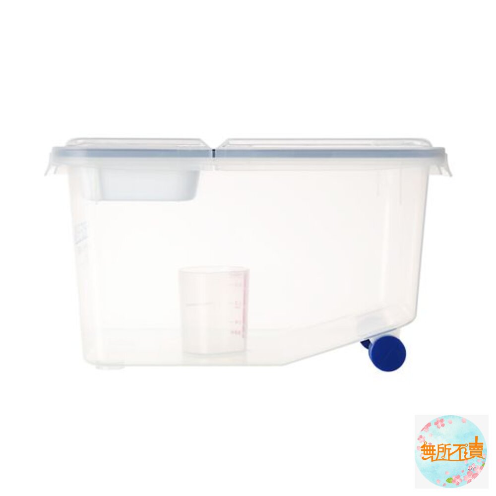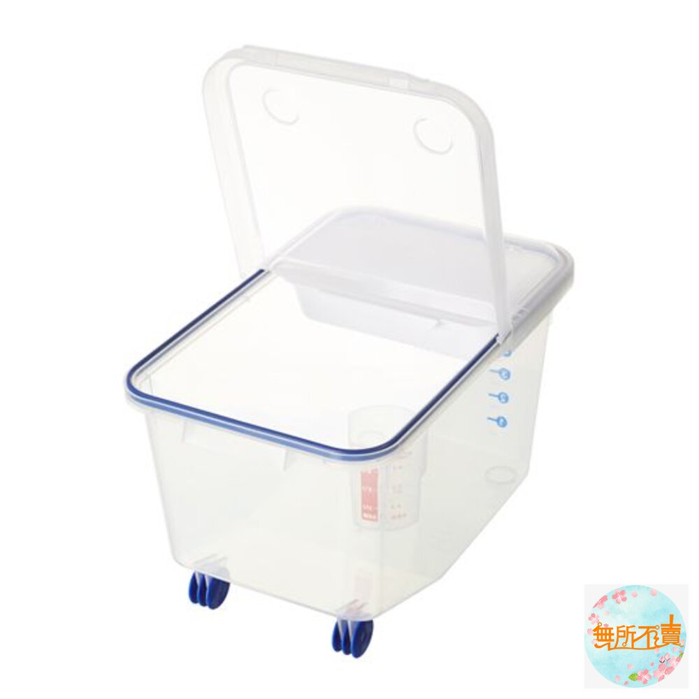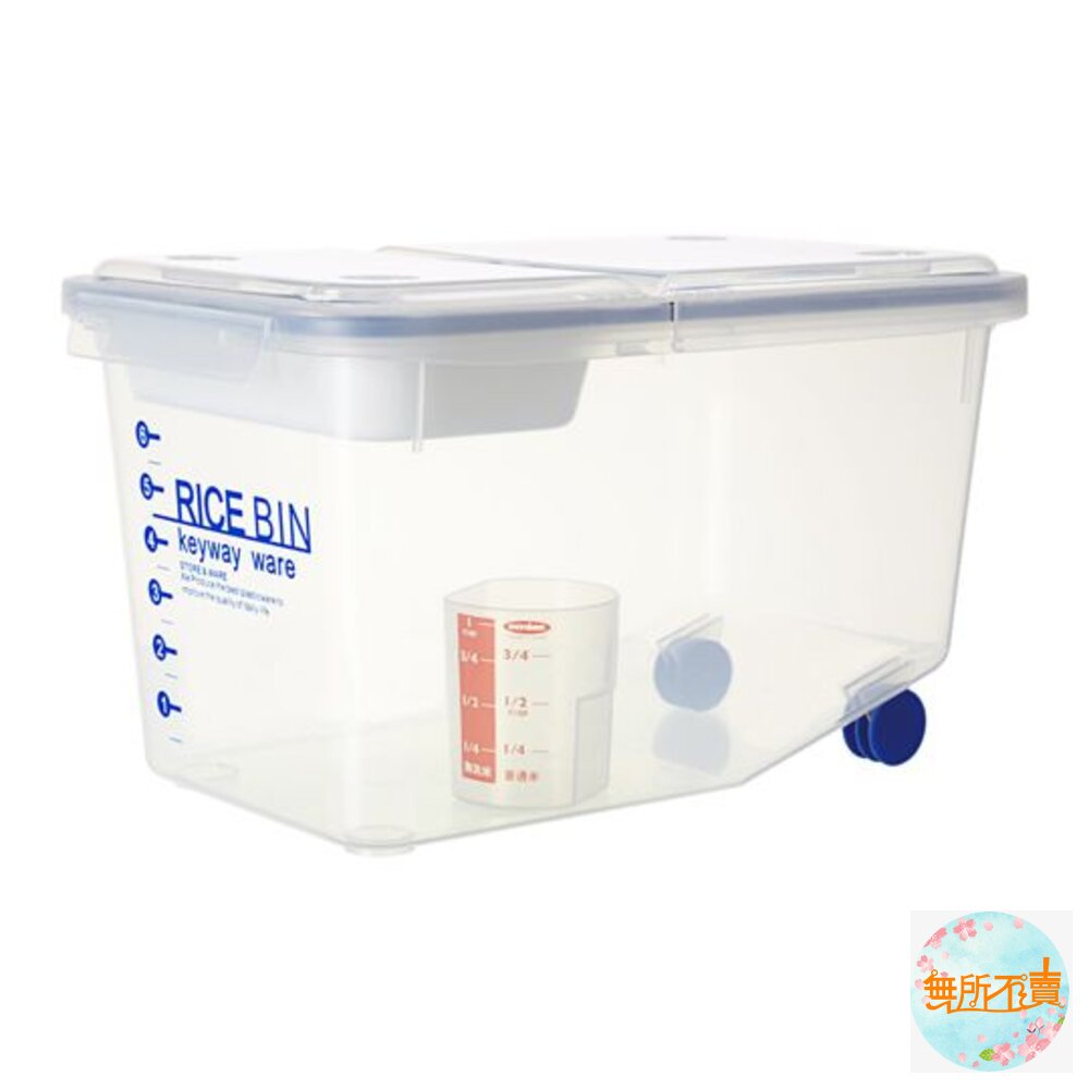 8KG密閉式米桶(附輪) 產品編號:D508 尺寸:350x216x202mm 產品特色 桶蓋可半開,附小盤1個,可分開儲存舊米,適用於米粒穀物之存放,四面環扣設計,透明身形,一目了然,蓋內膠條,防塵更密封,可防潮防蟲; 滑輪設計,移動不費力,桶內斜坡式設計,可讓米粒更集中,以便拿取,附量杯1個,亦可放置於冰箱作收納。