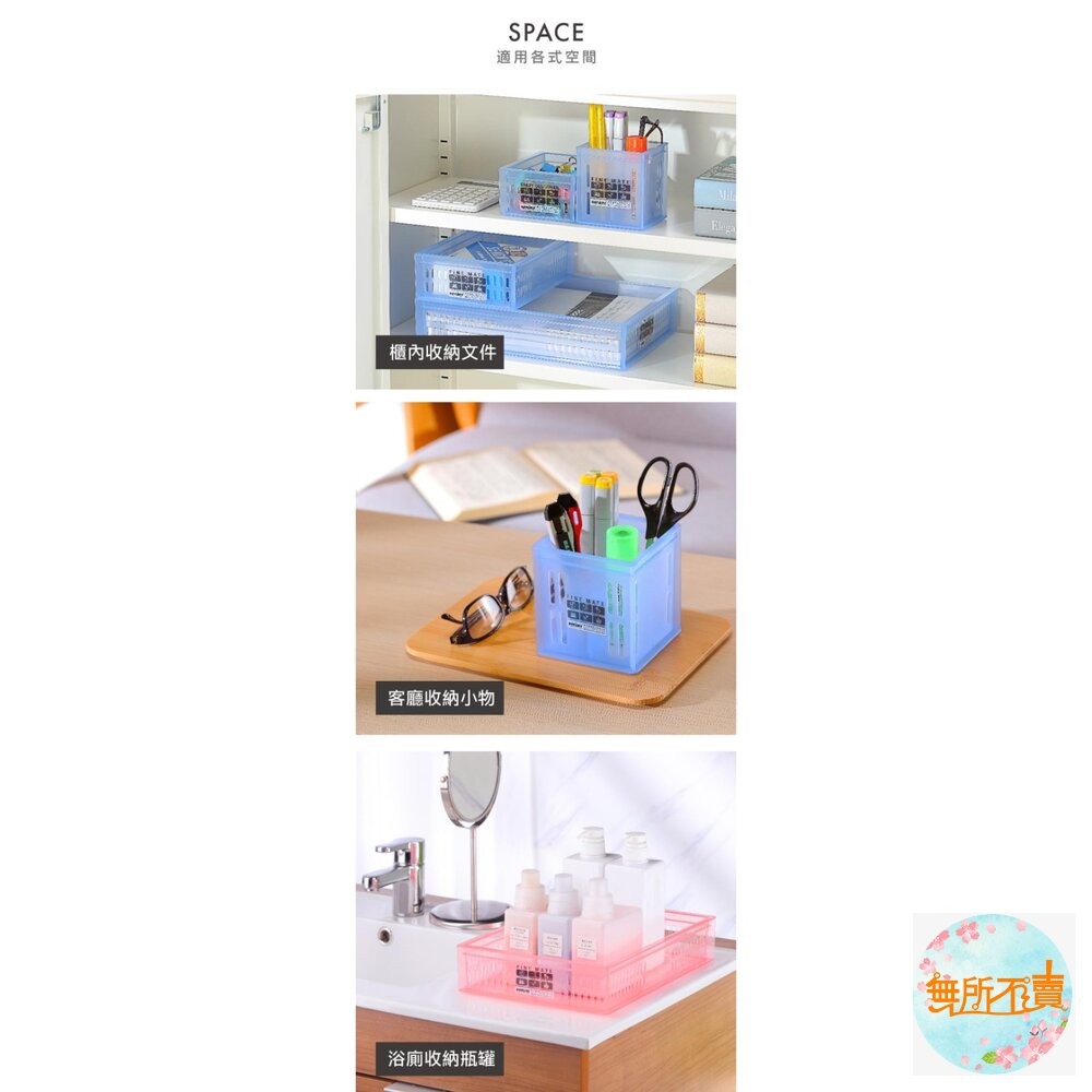 不同尺寸之產品,可相互堆疊,節省空間,亦可搭配系統櫃或抽屜使用,有清新綠、熱情紅、靜謐藍,可供選擇。
