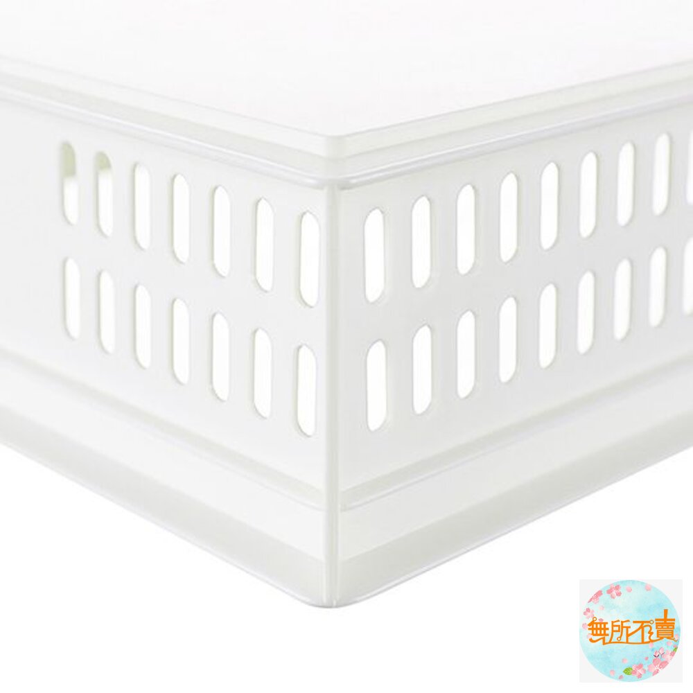 潔白無瑕色系,側面作透孔設計,通風透氣,便於透視內容物;不同尺寸之產品,可相互堆疊,節省空間,亦可搭配系統櫃或抽屜使用,其中新總理多用籃(DT14),內為十字分隔設計。