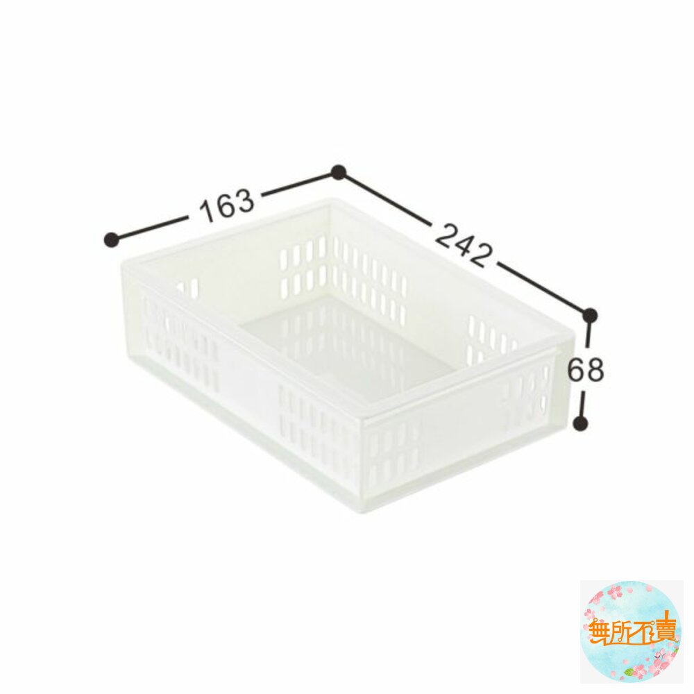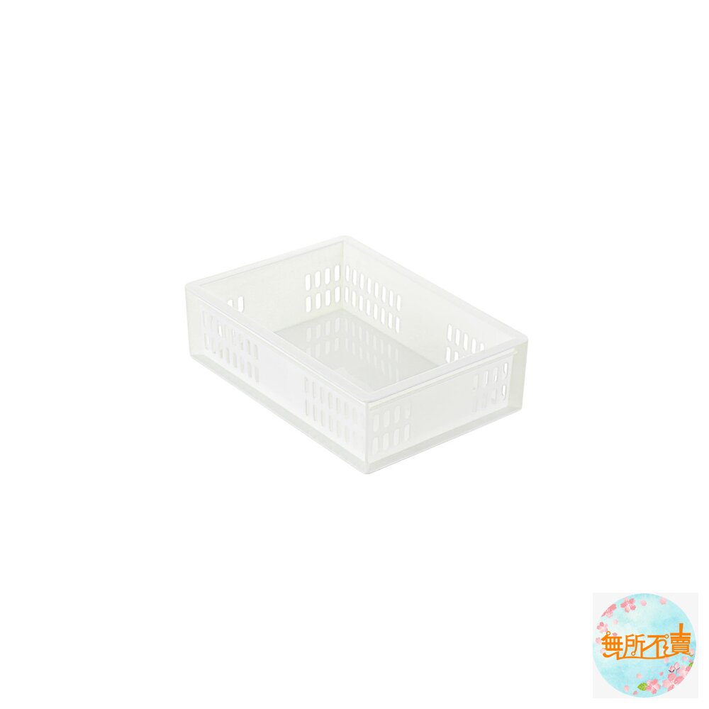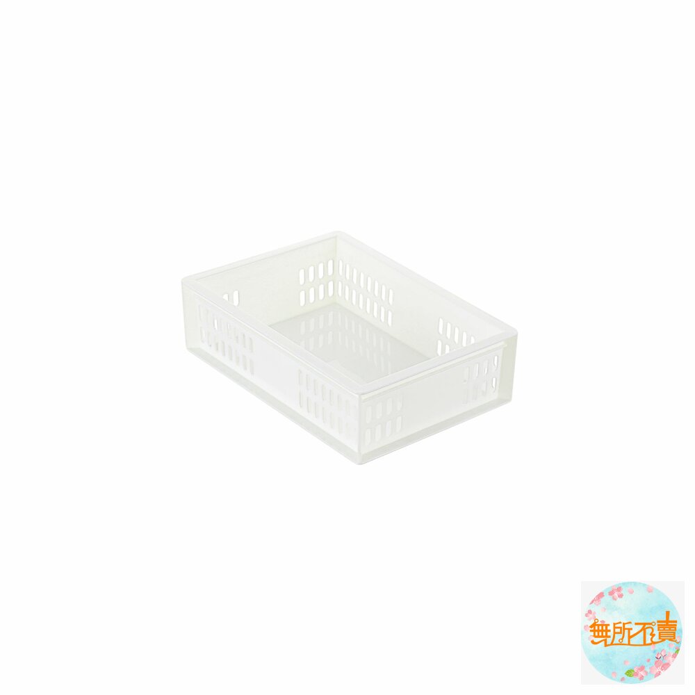 潔白無瑕色系,側面作透孔設計,通風透氣,便於透視內容物;不同尺寸之產品,可相互堆疊,節省空間,亦可搭配系統櫃或抽屜使用,其中新總理多用籃(DT14),內為十字分隔設計。