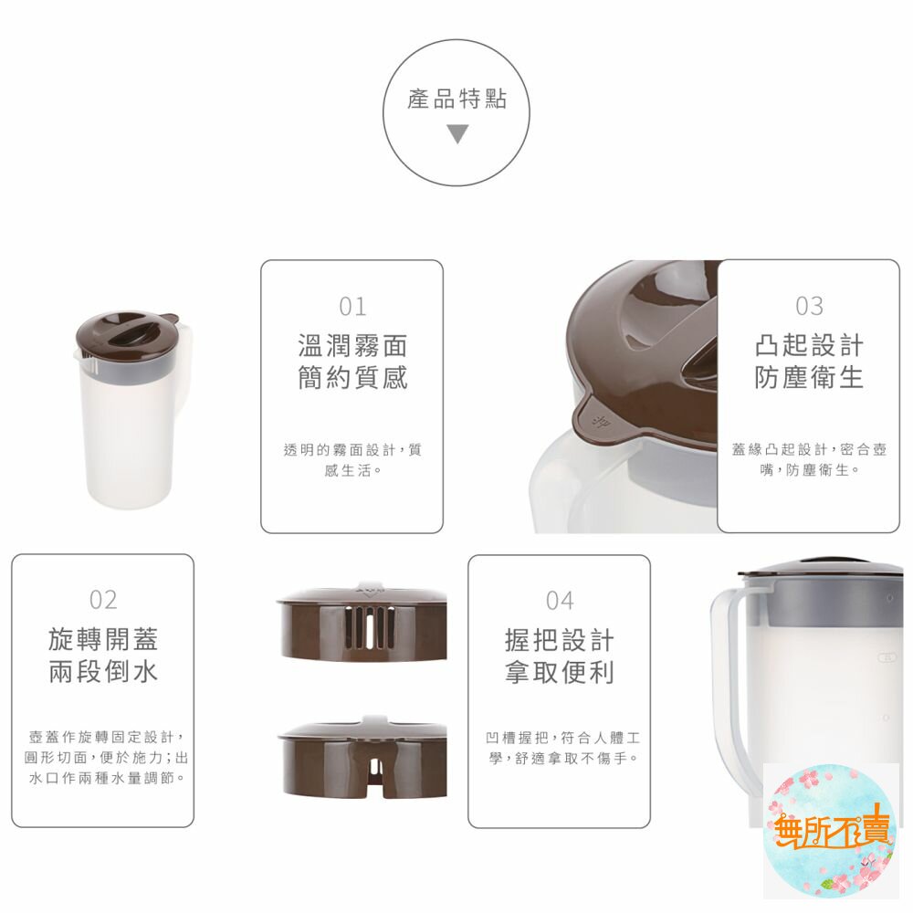E-20 (中)海灣冷水壺(2L) 產品編號:E20 尺寸:185x135x191mm 產品特色 充滿活力的淺綠色、溫暖親切的橘色、典雅大方的咖啡色,可供選擇; 圓型設計,霧面美感的設計,壺蓋凸部可對準出水口,隔絕灰塵、乾淨衛生,耐溫-20度C~+120度C。
