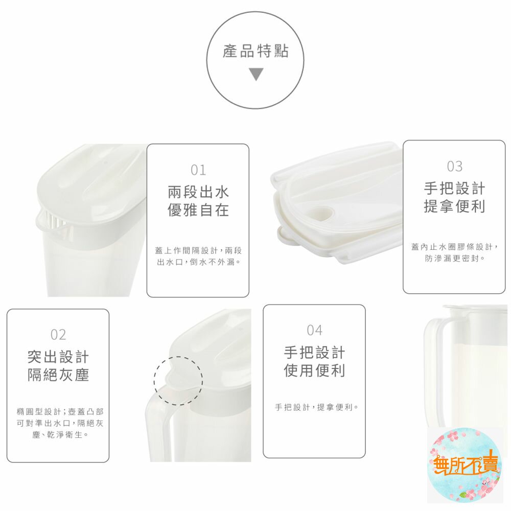 EZ-30 桐花冷水壺(3L) 產品編號:EZ30 尺寸:225X105x276mm 產品特色 五月雪的桐花紛飛,點綴成玉琢淨白色調,橢圓型設計;壺蓋凸部可對準出水口,隔絕灰塵、乾淨衛生,耐溫-20度C~+100度C。