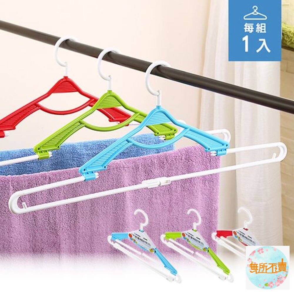 兩側伸縮式設計,領帶位、吊帶位設計,可吊掛領帶、皮帶、細肩帶衣裙等衣物,可旋轉式掛勾,更靈活方便;適用於小浴巾、大小衣物,有自由水藍、活力綠、熱情紅,可供挑選。