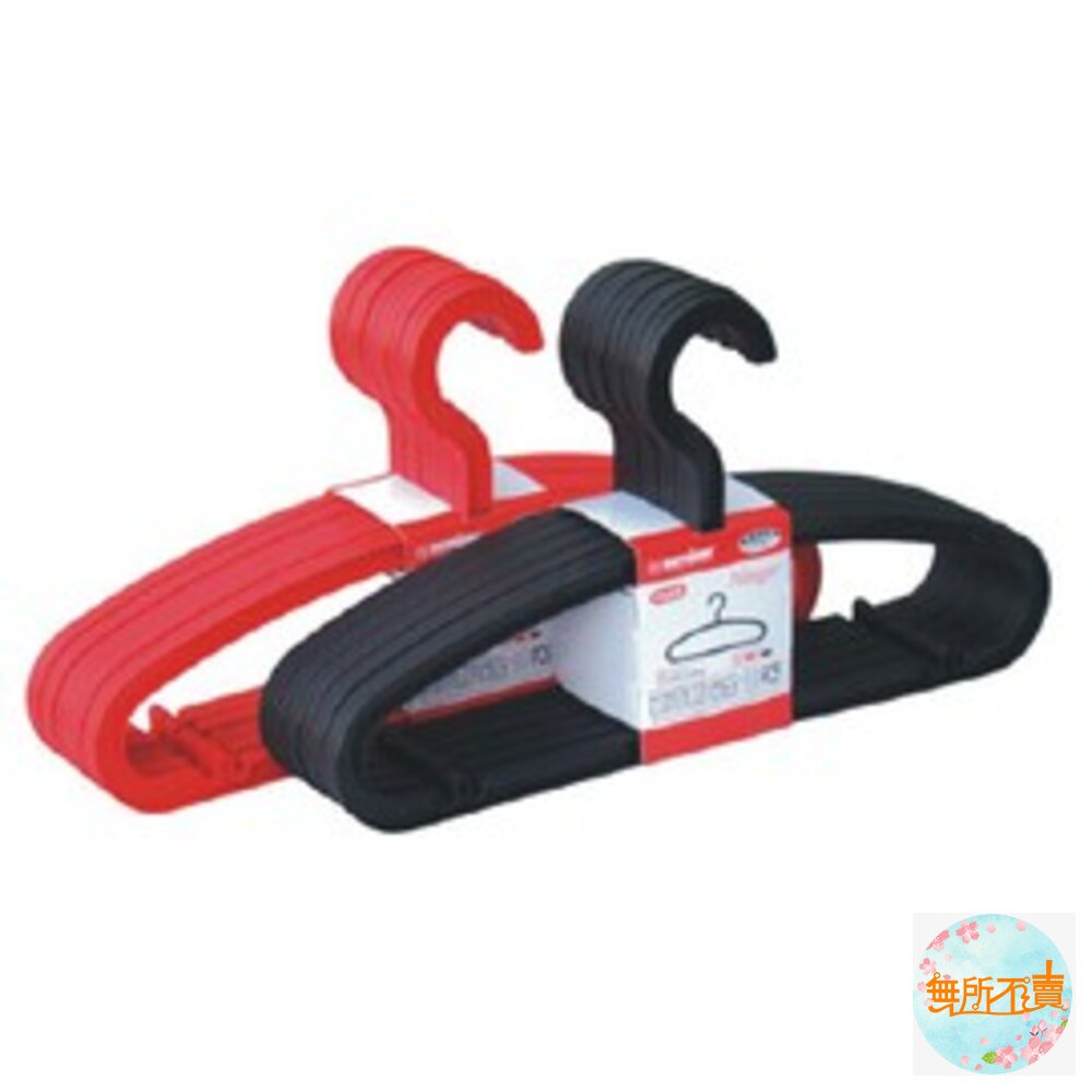 ※超取與店到店最多三組 F629 英吉利衣架(10入) 產品編號:F629 尺寸:425x7x230mm 產品特色 扁平衣架,收納更方便,吊帶位設計,可懸掛輕型裙褲、細肩帶衣物;有時尚黑、熱情紅,可供選擇。