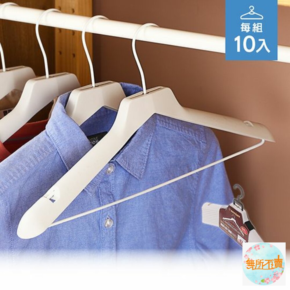 F910 鐵線衣架升級套(10入) 產品編號:F910 尺寸:425x38x119mm 產品特色 將鐵線衣架套上升級套,加厚寬肩設計,可使西裝、針織等衣物不易變形,凹槽設計,可吊掛洋裝、細肩帶衣物,亦可堆疊收納,節省空間。