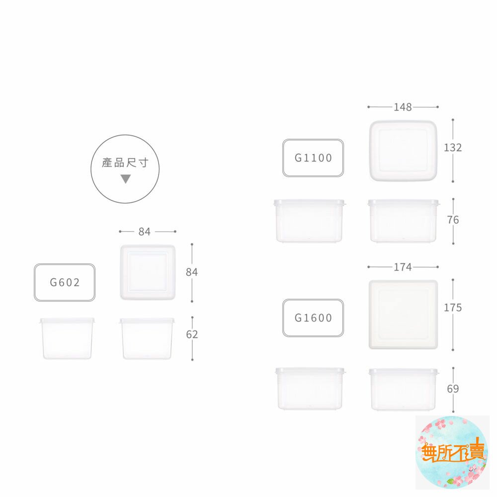 盒蓋凸部,便於打開,可相互層層疊放,有三種大小的產品,可供挑選,另有長型密封盒(G1300、G2000、G3000),可供選擇;