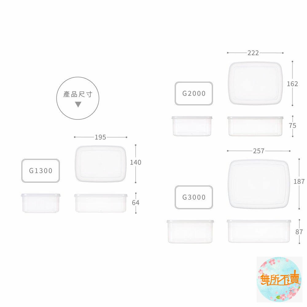 盒蓋凸部,便於打開,可相互層層疊放,有三種大小的產品,可供挑選,另有方型密封盒(G602、G1100、G1600),可供選擇;
