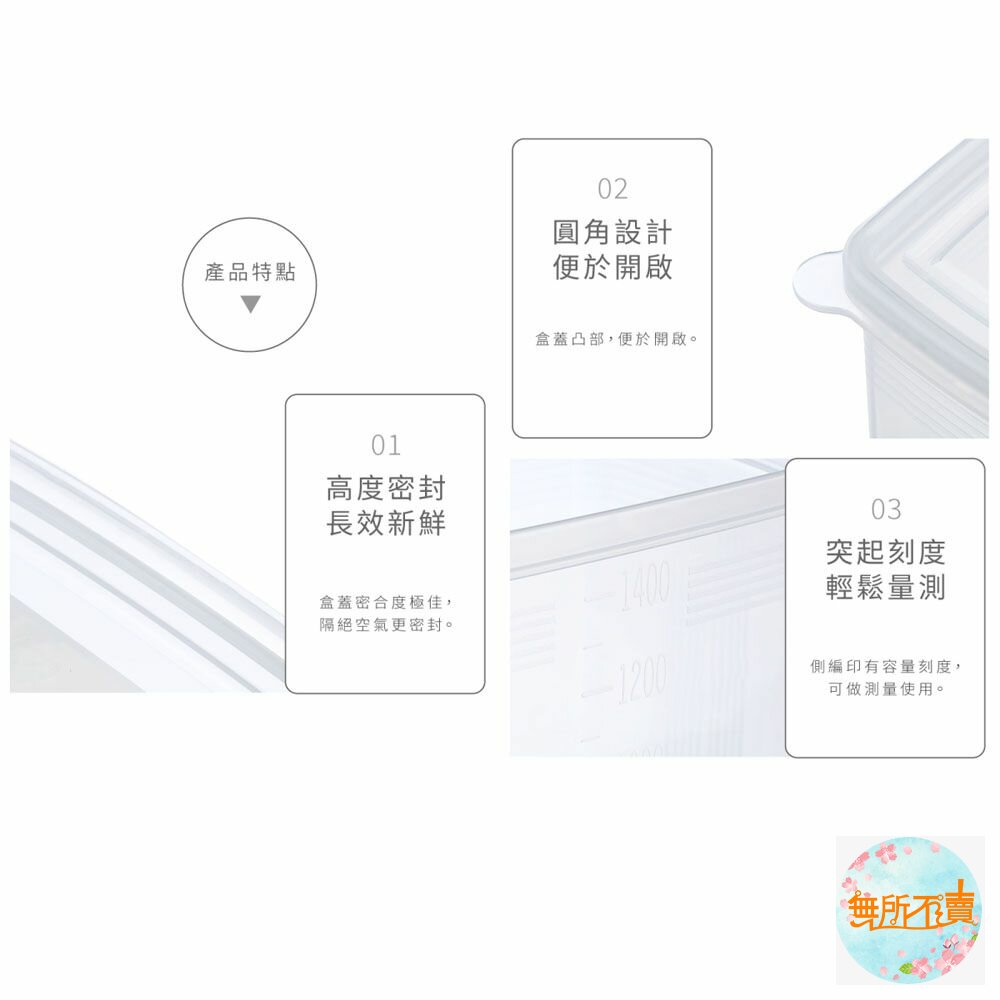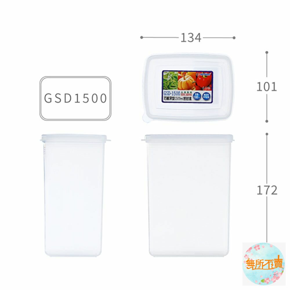 巧麗深型1500ml密封盒 產品編號:GSD1500 尺寸:134x101x172mm 產品特色 通透明亮,深型設計,盒蓋密合度極佳,隔絕空氣更密封,可將盒蓋拿起微波; 有容量刻度,可作測量,盒蓋凸部,方便打開盒蓋;耐溫-20度C~+120度C。