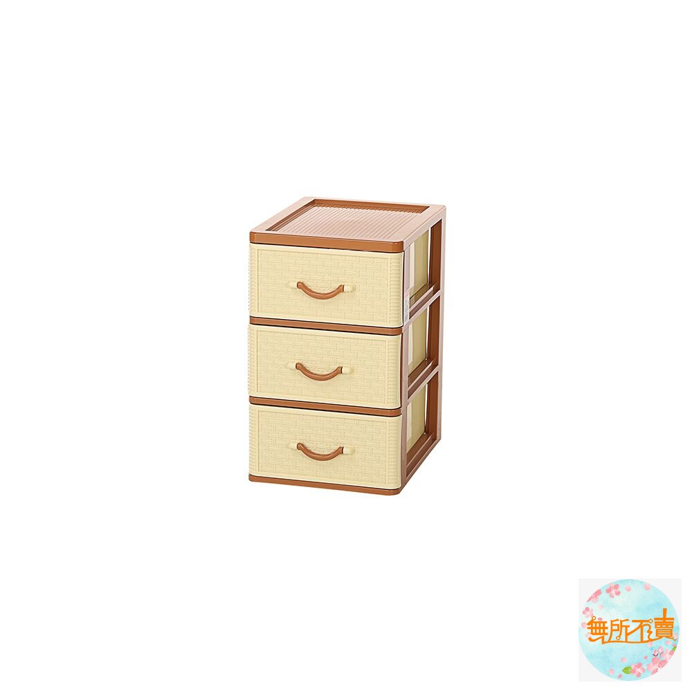 附輪設計,更方便移動,可組可拆,抽屜內卡榫設計,可防止抽屜掉落;圓弧手把,舒適拿取,抽屜作藤編設計,搭配幸福黃色調,更加溫馨,有三層、四層、五層之產品,可供選擇。