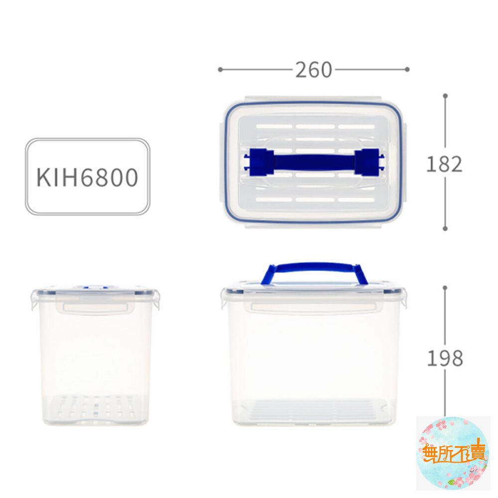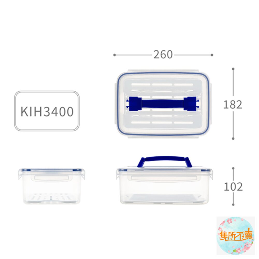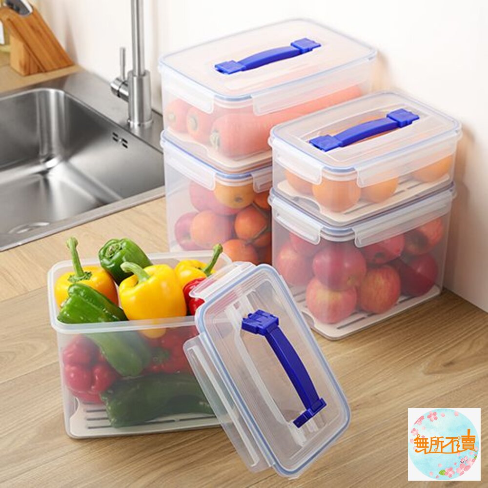 晶瑩剔透,一目了然的設計,可將盒蓋、濾網拿起微波,盒蓋提把,方便拿取;四面環扣,蓋內膠條,防滲漏更密封,附濾網,用於食材蔬果的存放,適用於外出野餐,可相互層層堆疊;有各式容量的產品,可供選擇;耐溫-20度C至110度C。