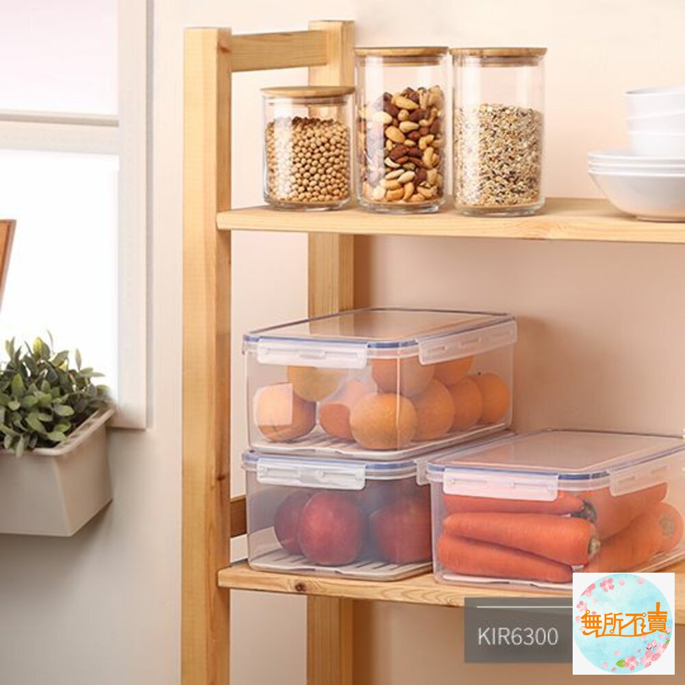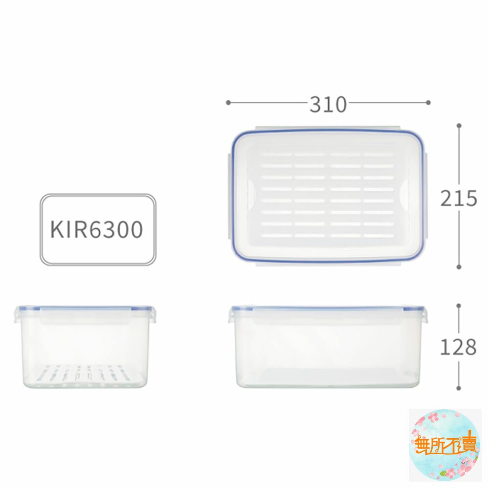 晶瑩透亮,盡收眼底的設計,長型身形,可冷藏,可將盒蓋拿起微波,四面環扣,蓋內膠條,防滲漏更密封;耐溫-20度C至120度C,有各式大小容量之產品,可供挑選,其中KIR3400、KIR6300、KIR6800、KIR11200之保鮮盒,附濾網可瀝水;另有天廚方形保鮮盒、天廚圓形保鮮盒,可供選擇。