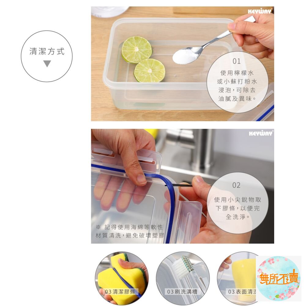 晶瑩透亮,盡收眼底的設計,長型身形,可冷藏,可將盒蓋拿起微波,四面環扣,蓋內膠條,防滲漏更密封;耐溫-20度C至120度C,有各式大小容量之產品,可供挑選,其中KIR3400、KIR6300、KIR6800、KIR11200之保鮮盒,附濾網可瀝水;另有天廚方形保鮮盒、天廚圓形保鮮盒,可供選擇。