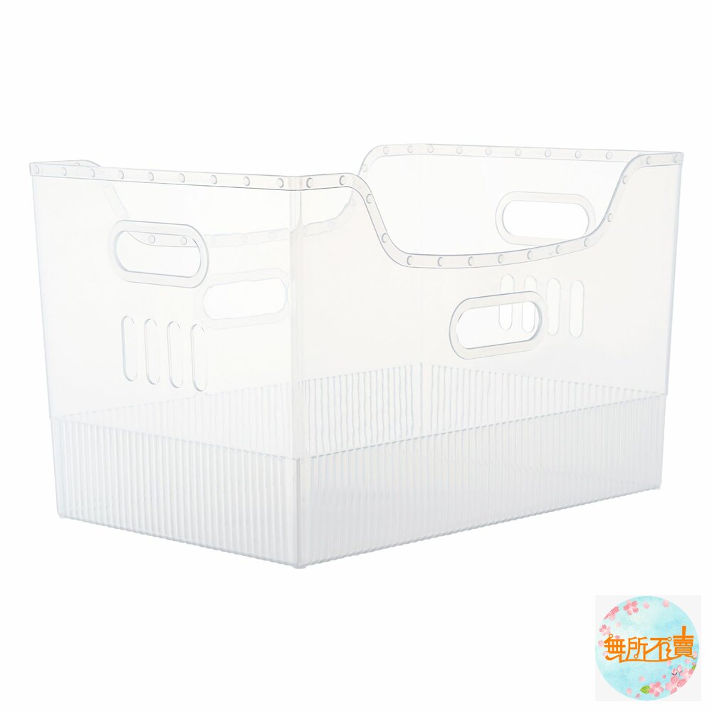 光亮透明,一目了然,適用於桌面檔案、櫥櫃內物品之收納,亦可放置於冰箱內作收納,握把設計,便於拿取,