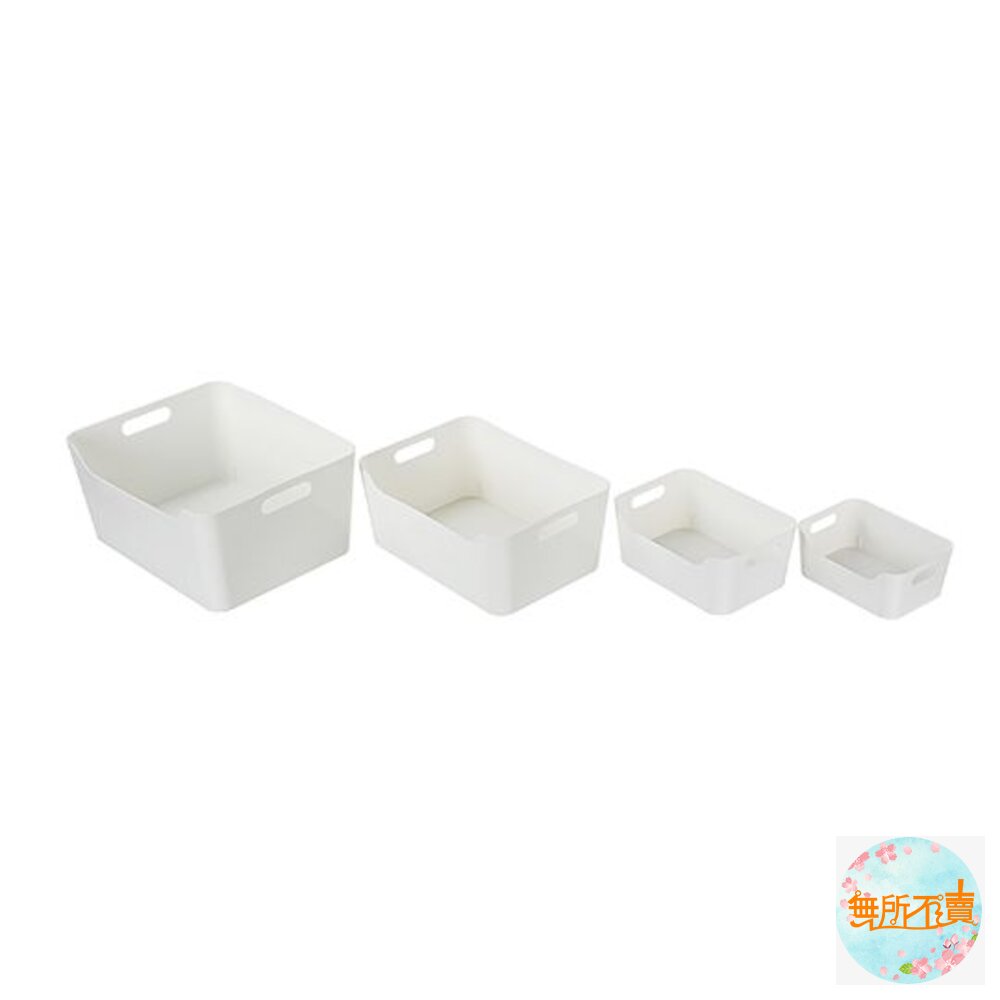 產品特色淨白素雅色系,手把設計,便於拿取,凹口設計,便於取物;方可搭配收納櫃、系統櫃使用,亦可堆疊收納,節省空間,有四種尺寸,可供選擇。