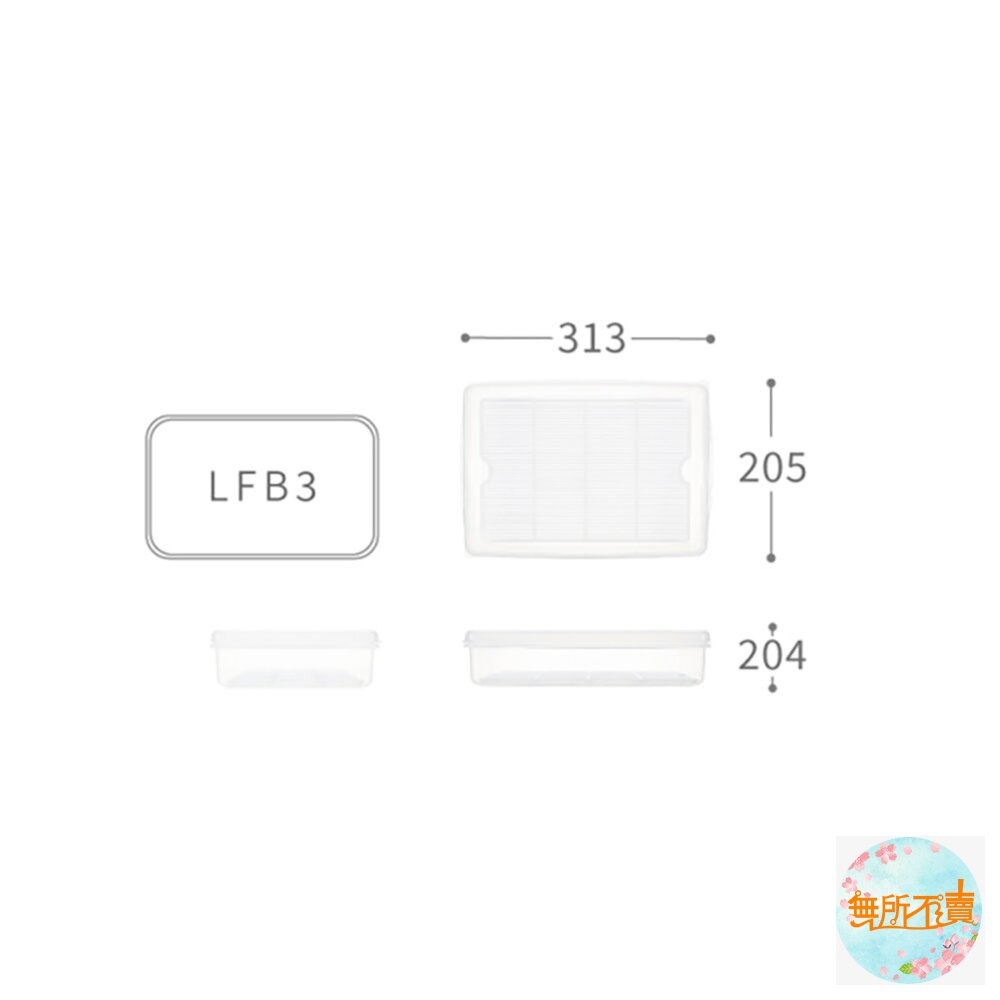 晶瑩透亮,長方型設計,可相互層層堆疊,濾網設計可瀝水,用於蔬果食材的存放,盒身凸部,便利拿取,盒蓋凸部,便於打開;可冷藏、可放入洗碗機清洗、可將盒蓋、濾網拿起微波,耐溫-20度C至120度C,有四種大小的產品,可供挑選,另有名廚長型保鮮盒(LF01、LF02、LF03、LF04、LF05、LF06、LF07),可供選擇。