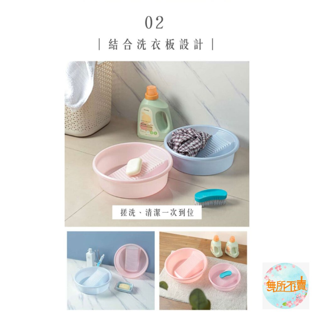 洗衣板與洗衣盆的結合,更簡便洗衣;有兩種尺寸,P20040有自由奔放的天藍色、潔白乾淨的白色、甜美可愛的粉紅色,P50017有寧靜致遠的淺藍色、潔淨素雅的白色、優雅浪漫的粉紅色。