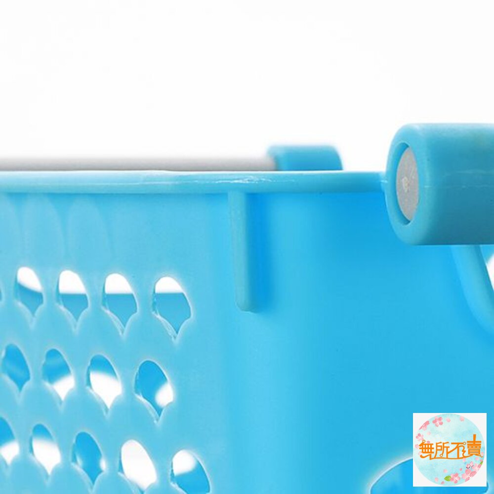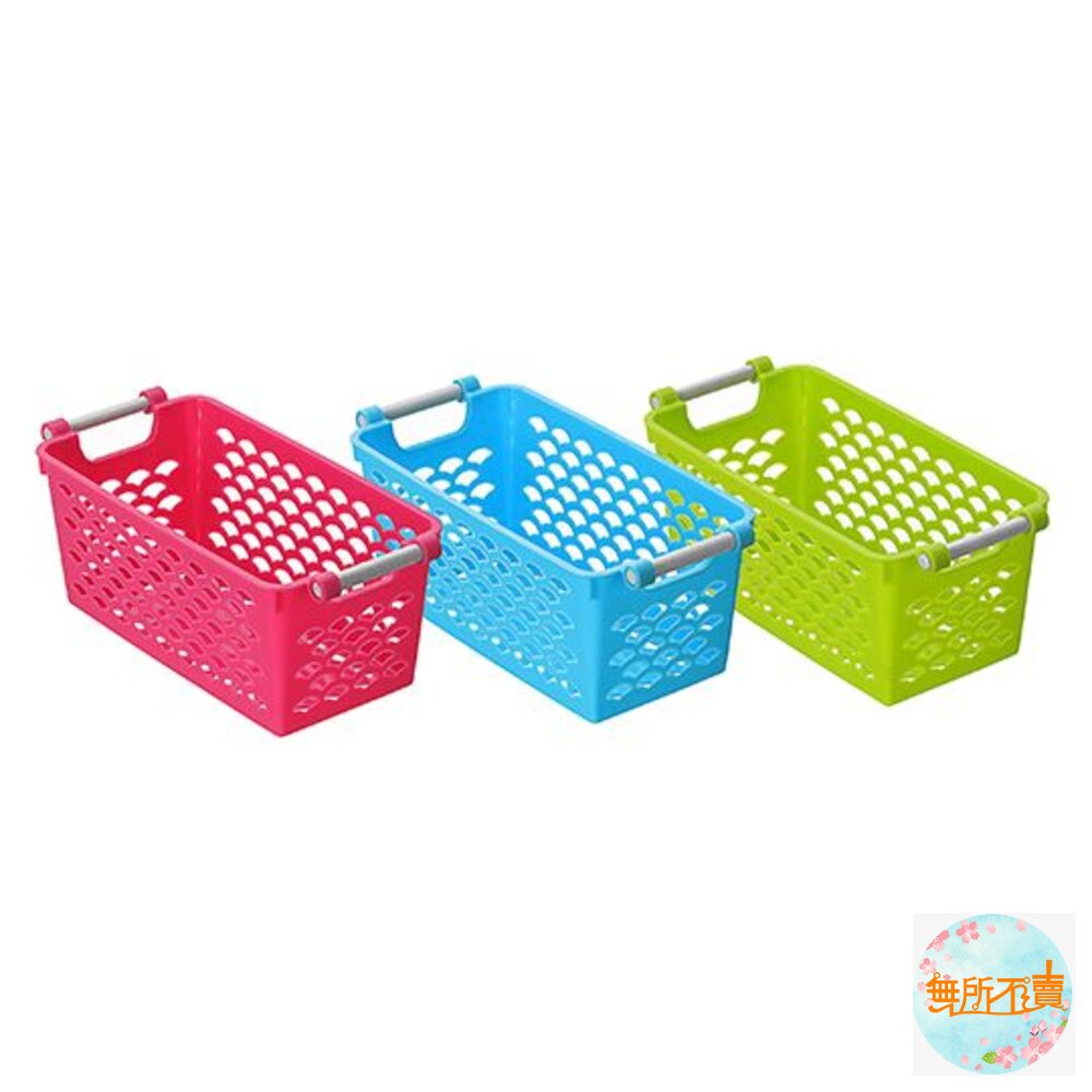適用於各式雜物、浴室物品等小物收納,籃面作扇形透孔設計,通風瀝水,弧形手把,舒適拿取;