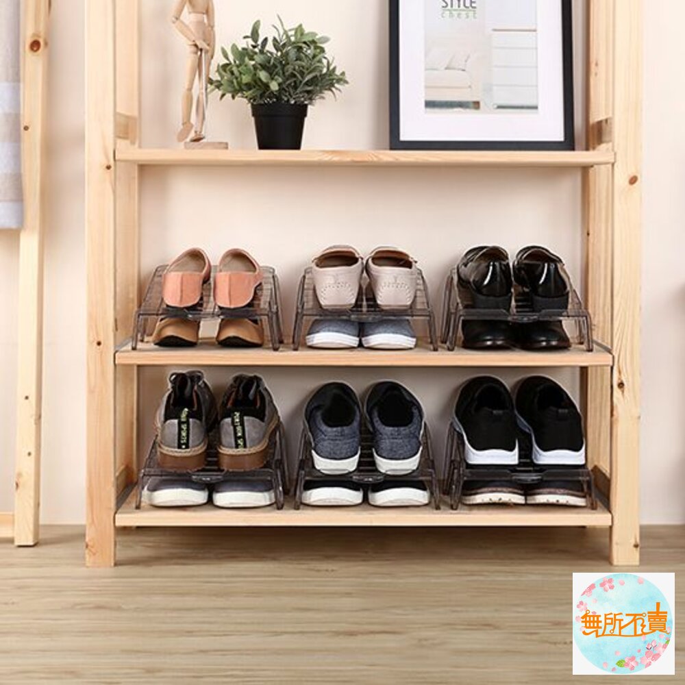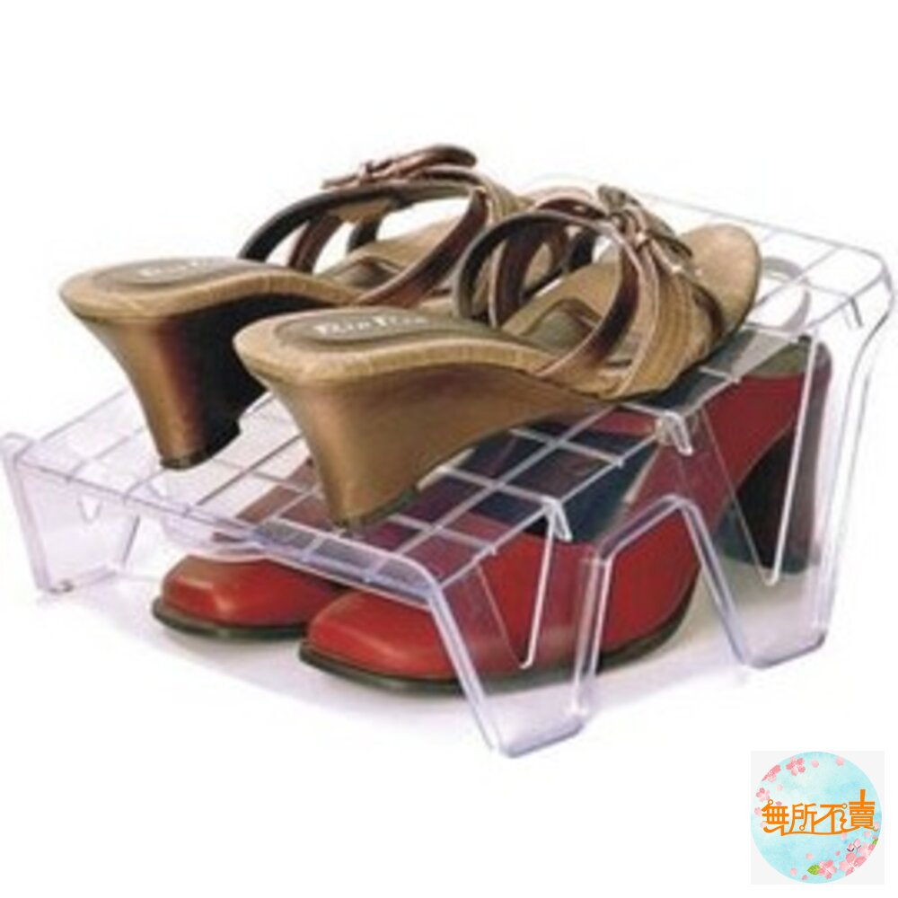 鞋櫃空間倍增,晶瑩剔透,防止愛鞋變形,阻擋隔板,防止鞋子滑落,配合凸部把手設計,輕輕將鞋架托起,即可將下層鞋子取出,節省空間好收納;男女鞋適用,下層置鞋高度,適用於6CM以下高跟鞋,注意:過高鞋跟會讓鞋架離地。