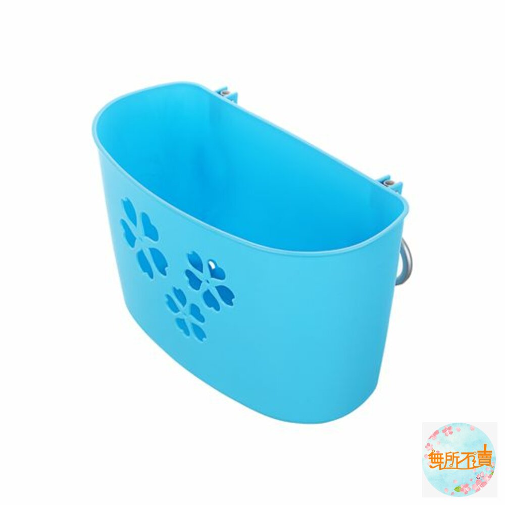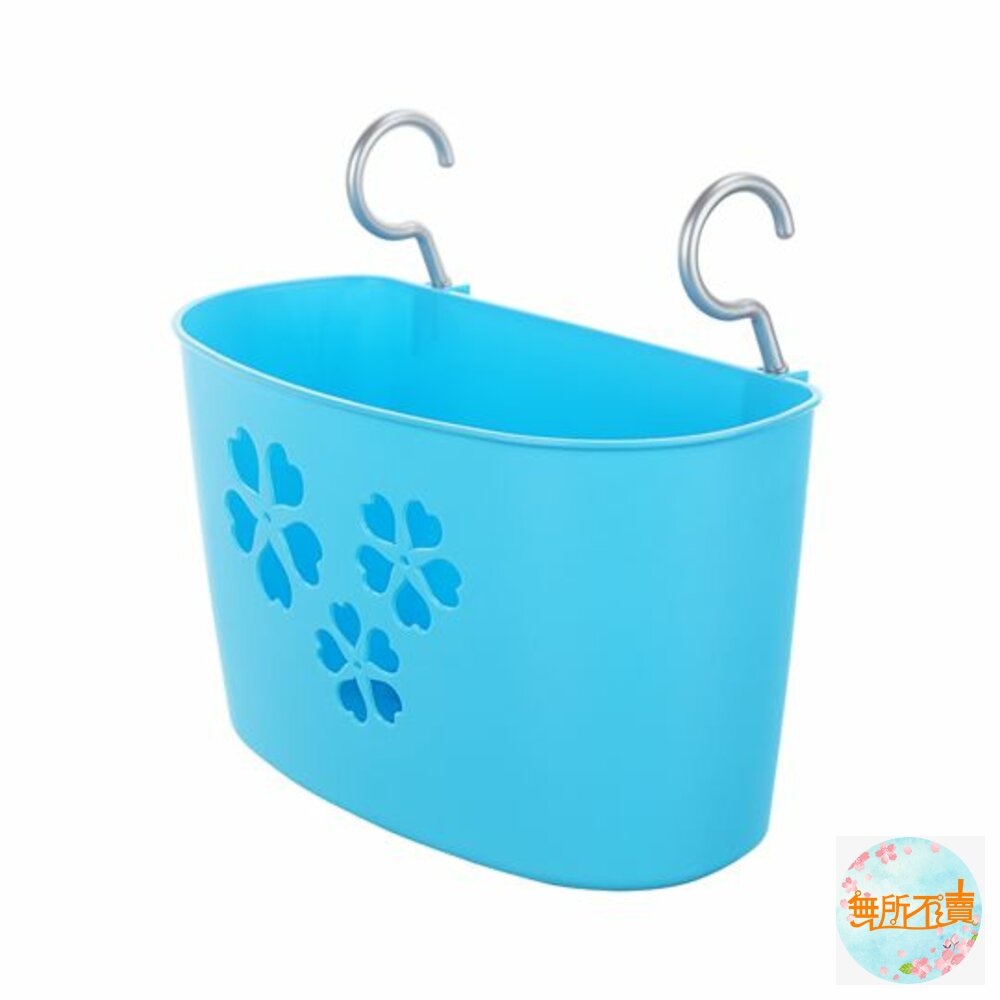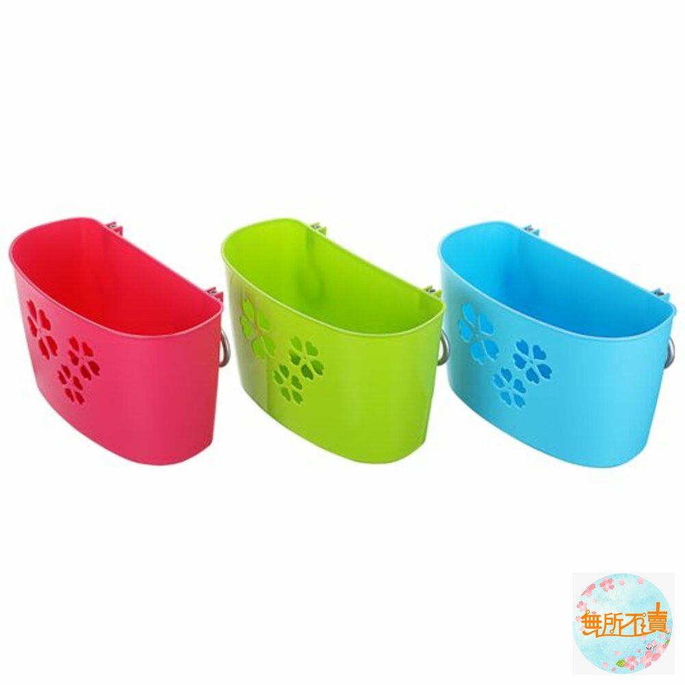 附掛勾式吊籃,籃面作櫻花狀透孔設計,下方洞孔可作續勾設計,可續掛吊籃,適用於衛浴、廚房等各式空間,有三種尺寸,可供選擇,熱情紅、活力綠、奔放藍,可供挑選。