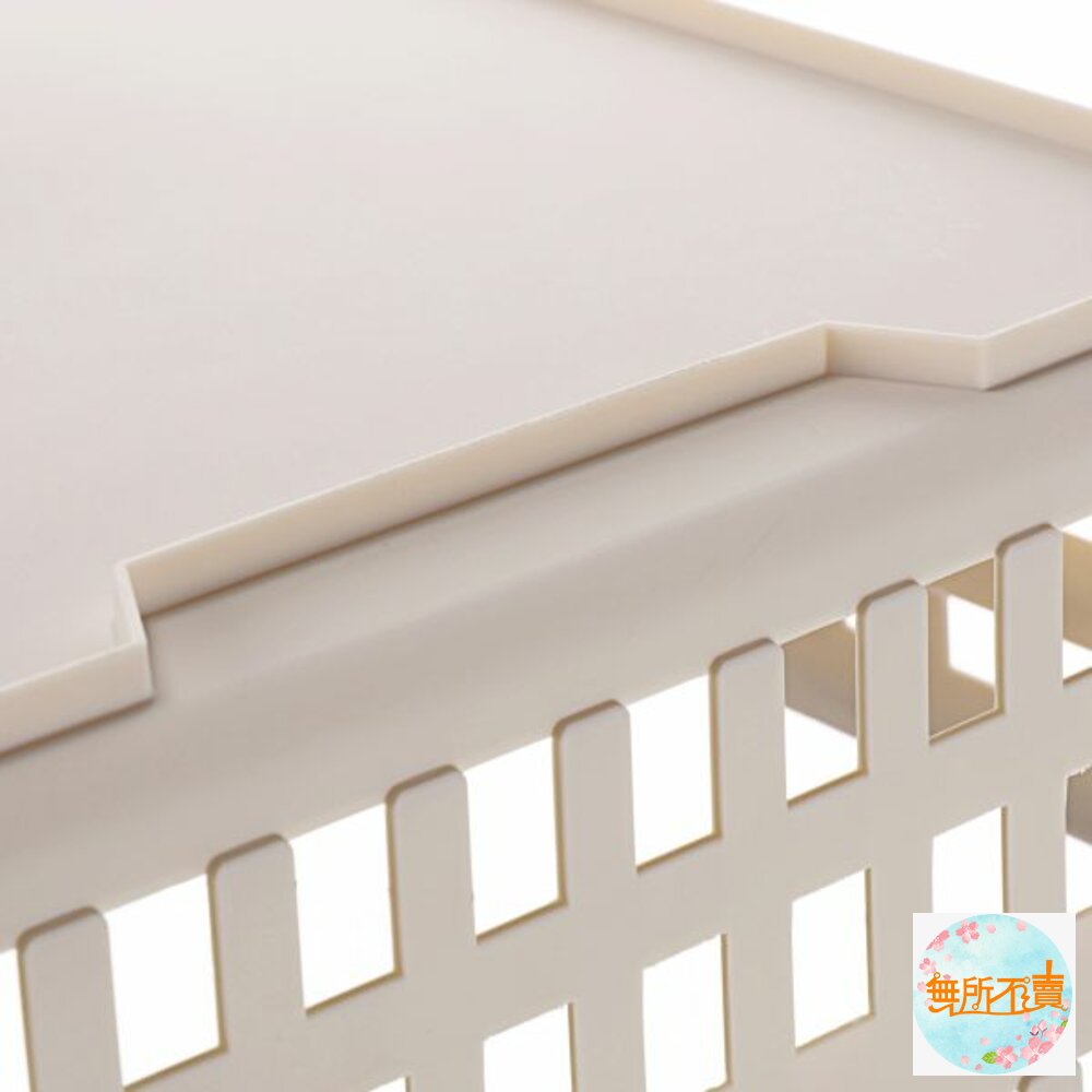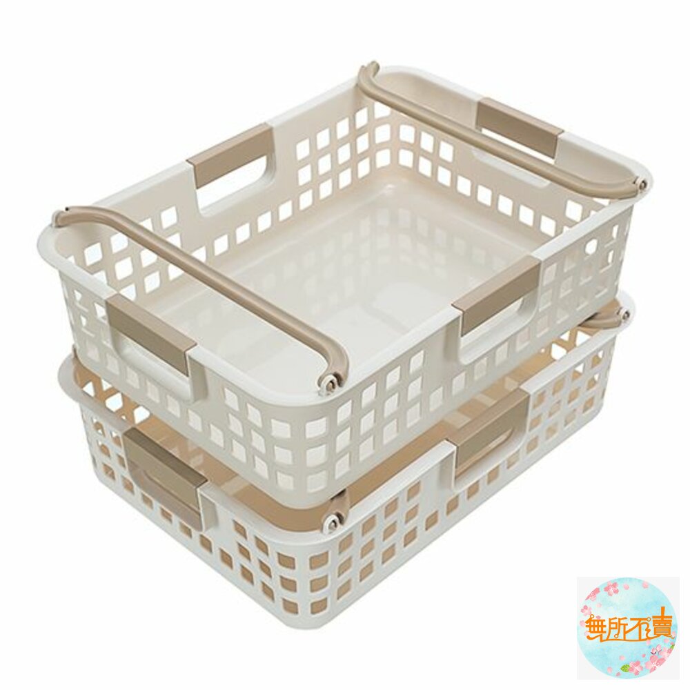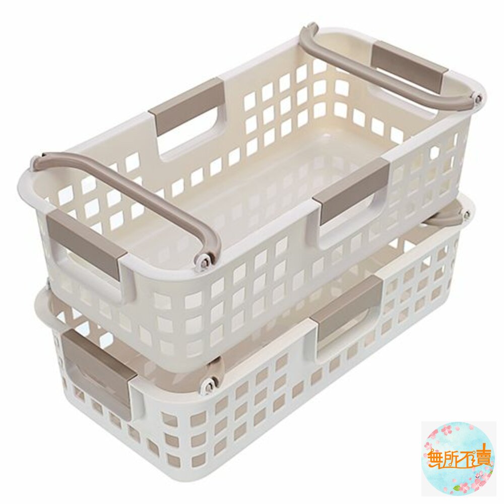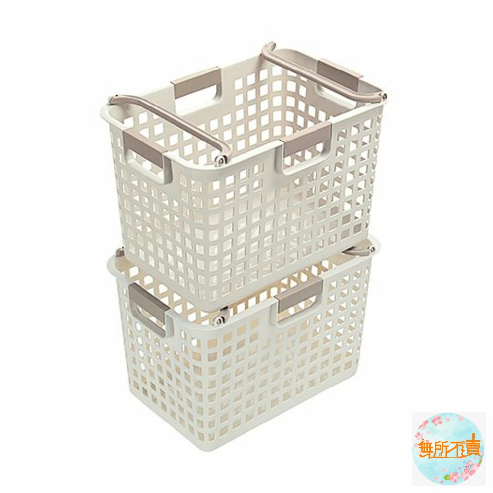 產品特色簡約大方色調,適用於各式雜物的放置,側面為方孔設計,通風透氣,四面手把設計,便於拿取,兩邊提把往內固定,不同尺寸之產品,方可作輕便堆疊;亦可堆疊收納,節省空間,可搭配鐵架、系統櫃使用,有各式尺寸,可供選擇。