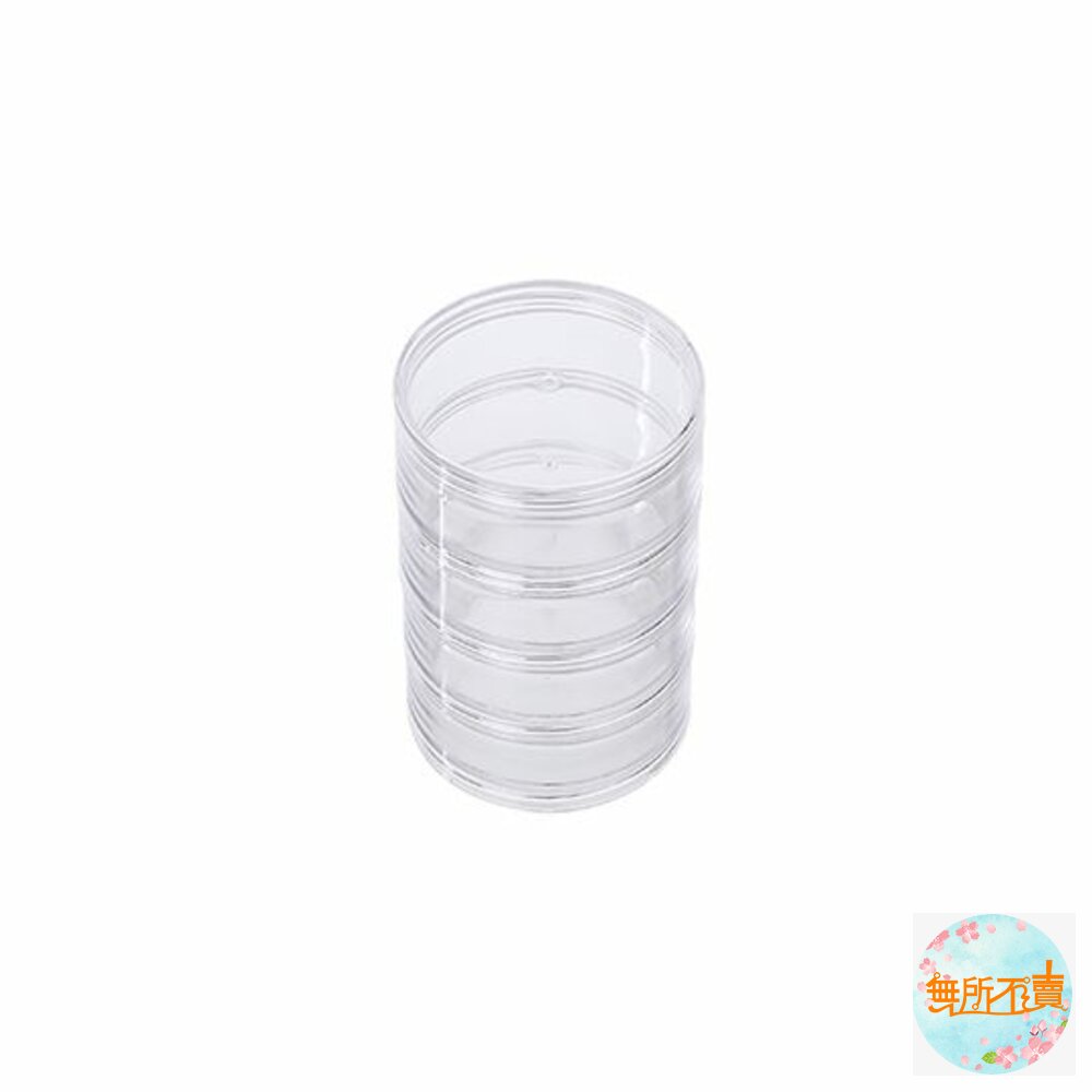 TLC-704 7公分連續盒4層 產品編號:TLC704 尺寸:70x70x110mm 產品特色 圓型設計,晶瑩剔透色調,旋轉式盒蓋設計,層層旋扣,透明身形,清楚分類,一覽無疑,拿取便利;適用於零件、髮圈、文具、手工藝品等各式小物,有各式大小、層數的產品,可供選擇。