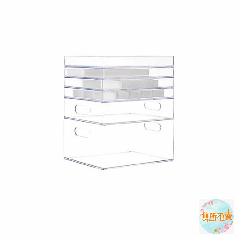 晶瑩剔透,一目了然,適用於化妝品、文具、飾品等小物收納,六種不同樣式之產品,可隨自身需求,相互層層堆疊,自由搭配;