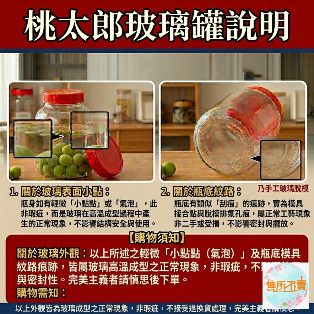 大容量食品級玻璃罐,搭配紅色密封蓋,適合釀青梅酒、藥酒、醬菜與乾貨長期保存。