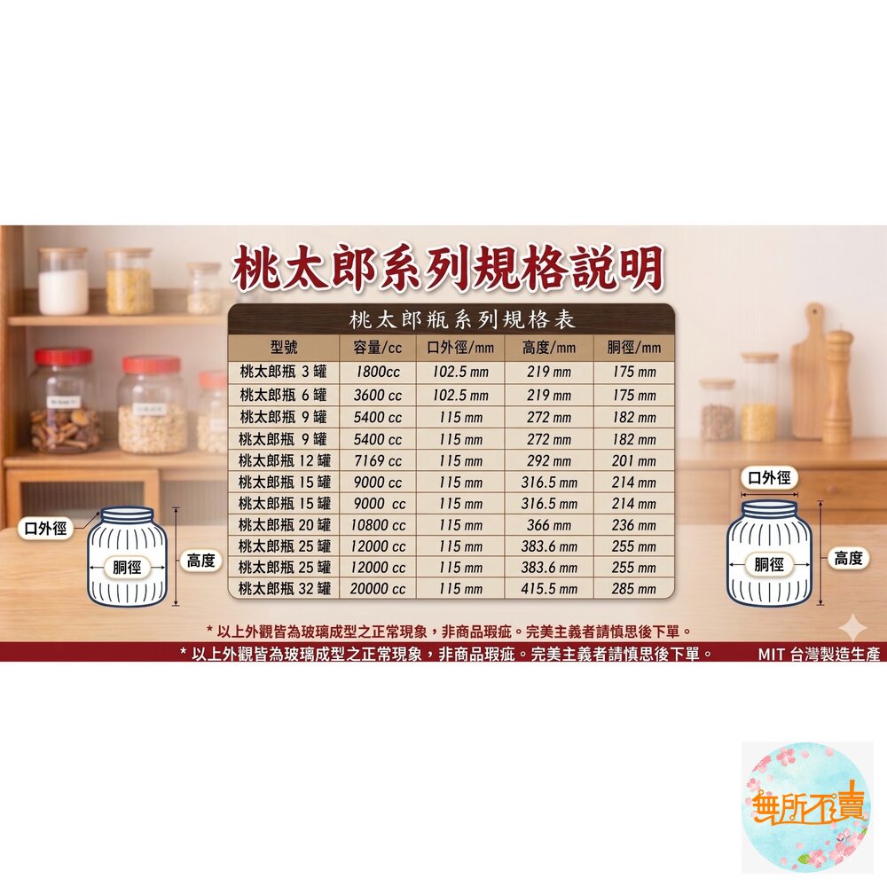 多種容量選擇:3.5L~25L 多規格,附推薦裝量(如9L罐約可裝4斤梅子)