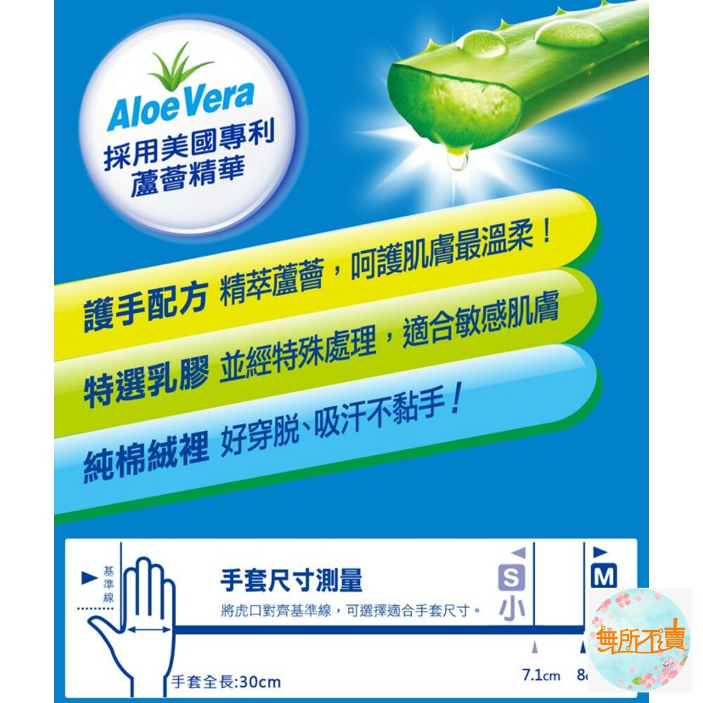 添加天然蘆薈護手配方,雙重呵護手部肌膚,且有天然植物香味,戴後不殘留塑膠味。