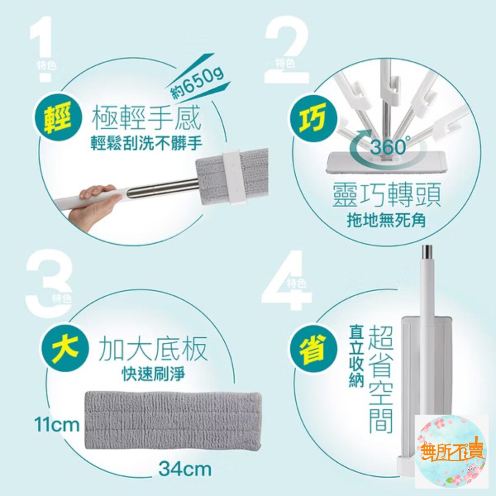 規格:超纖拖布 33.5*10.5cm ( ± 1cm) 、拖把組最高 143cm