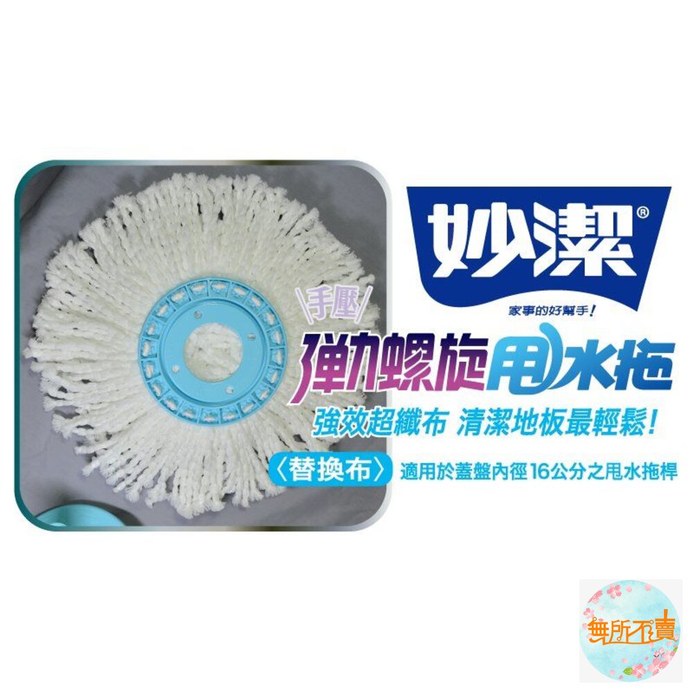 ●強效超纖布,清潔地板最輕鬆 ●適用於蓋盤內徑16公分的甩水拖桿 強效超纖布,清潔地板最輕鬆 適用於蓋盤內徑16公分的甩水拖桿 材質:塑料、超細纖維 規格:拖把布-直徑 38cm 原產地:台灣 保存期限:10年