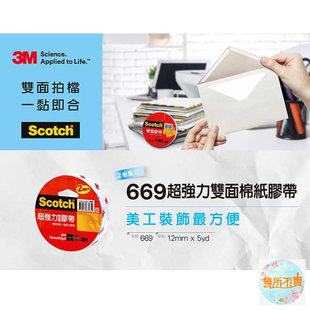 3M Scotch 超強力雙面膠帶 669, 12 mm x 5 yd